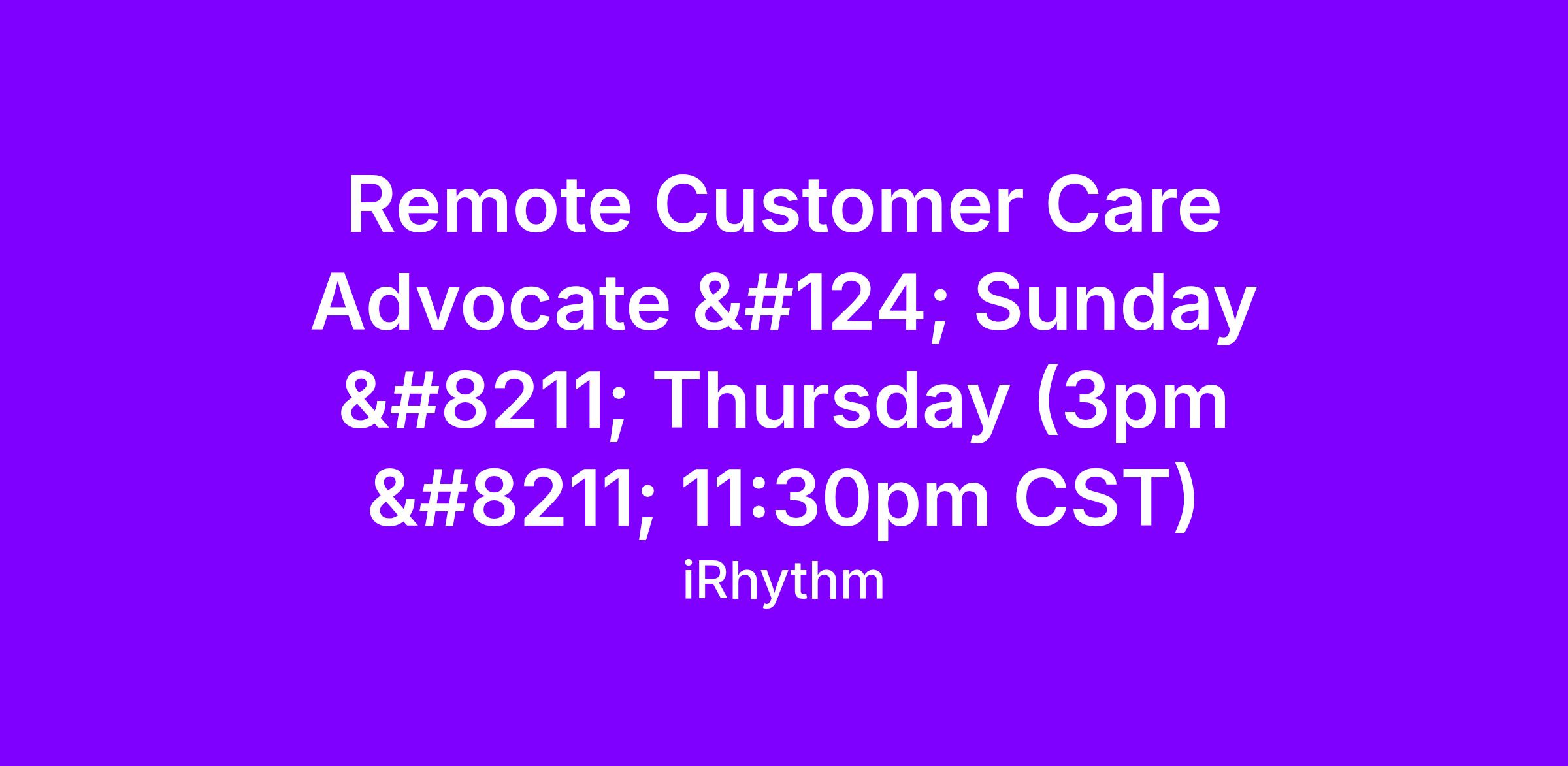 Shift: Customer Care Advocate | Sunday – Thursday (3pm – 11:30pm CST)