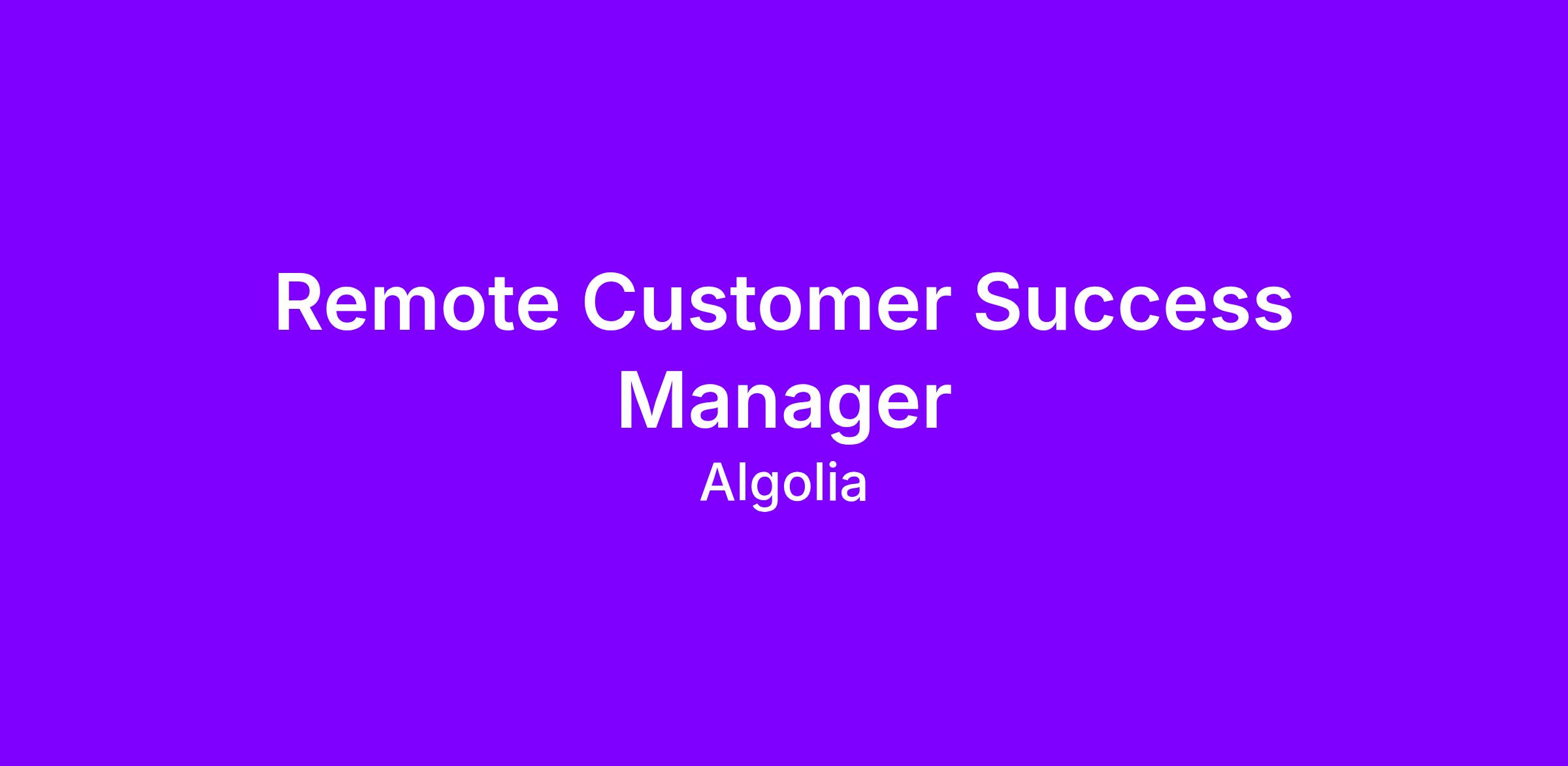 At Algolia, we are passionate about our customers so we’re looking for an all Customer Success Manager who is ready to join our team and help support our growing AMER customer base. We’re looking for a strategic, relationship-focused Customer Success Managerwho thrives in a fast-paced, customer-first environment. In this role, you’ll partner with our top-tier customers as their trusted advisor and business strategist, enabling them to fully leverage and expand the value of Algolia’s platform. You will work closely with our Account Executives and Solutions Architects to ensure customers achieve their business objectives, advise them on best practices and act as the voice of the customers internally.