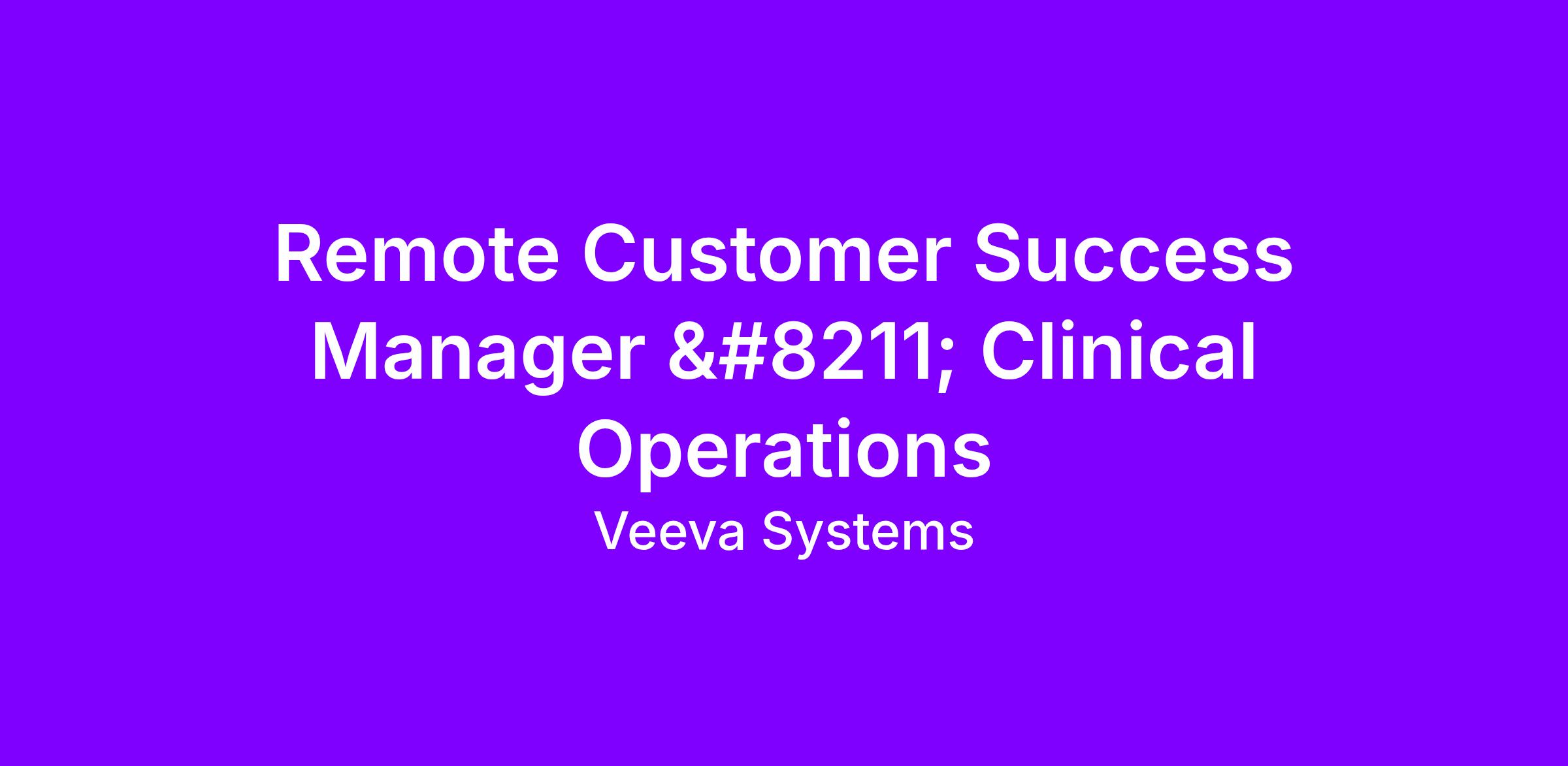 As a Customer Success Manager, you will be responsible for ensuring our CROs customers’ success with Veeva’s Clinical Operations’ products and services. You will serve as a liaison between Veeva and key customer stakeholders to foster collaboration, triage escalations, and highlight value through proactive engagement.