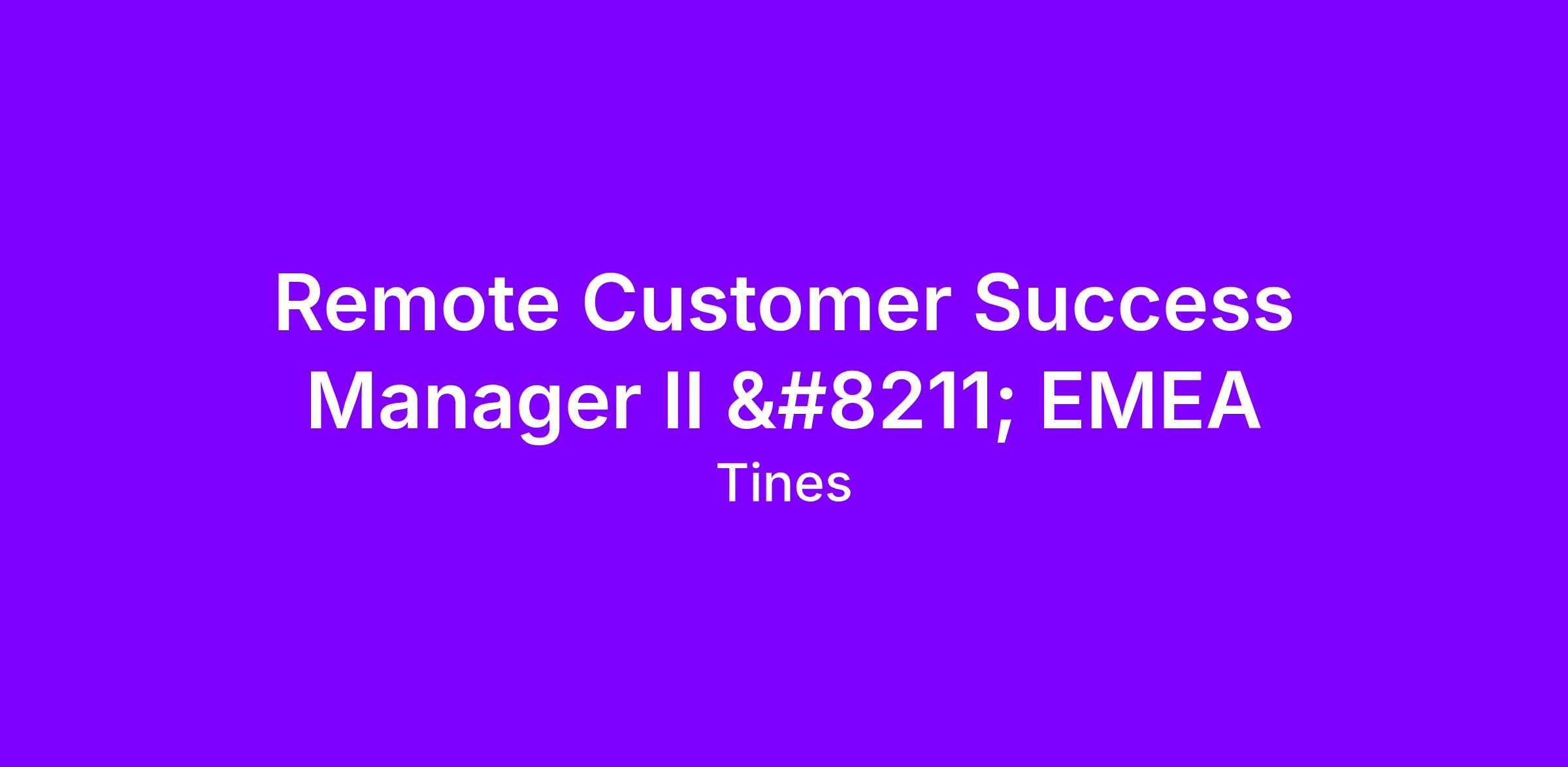 You will do this by supporting our customers from onboarding to ongoing support to expansion and renewals. You will become a trusted advisor and subject matter expert on the Tines product, helping foster champions within the customer who will identify automation opportunities across their organization. At the same time, you will provide feedback to our Product and Engineering teams, helping us shape the future of the product. The role will also partner closely with Sales, Support, Marketing, and other internal teams.