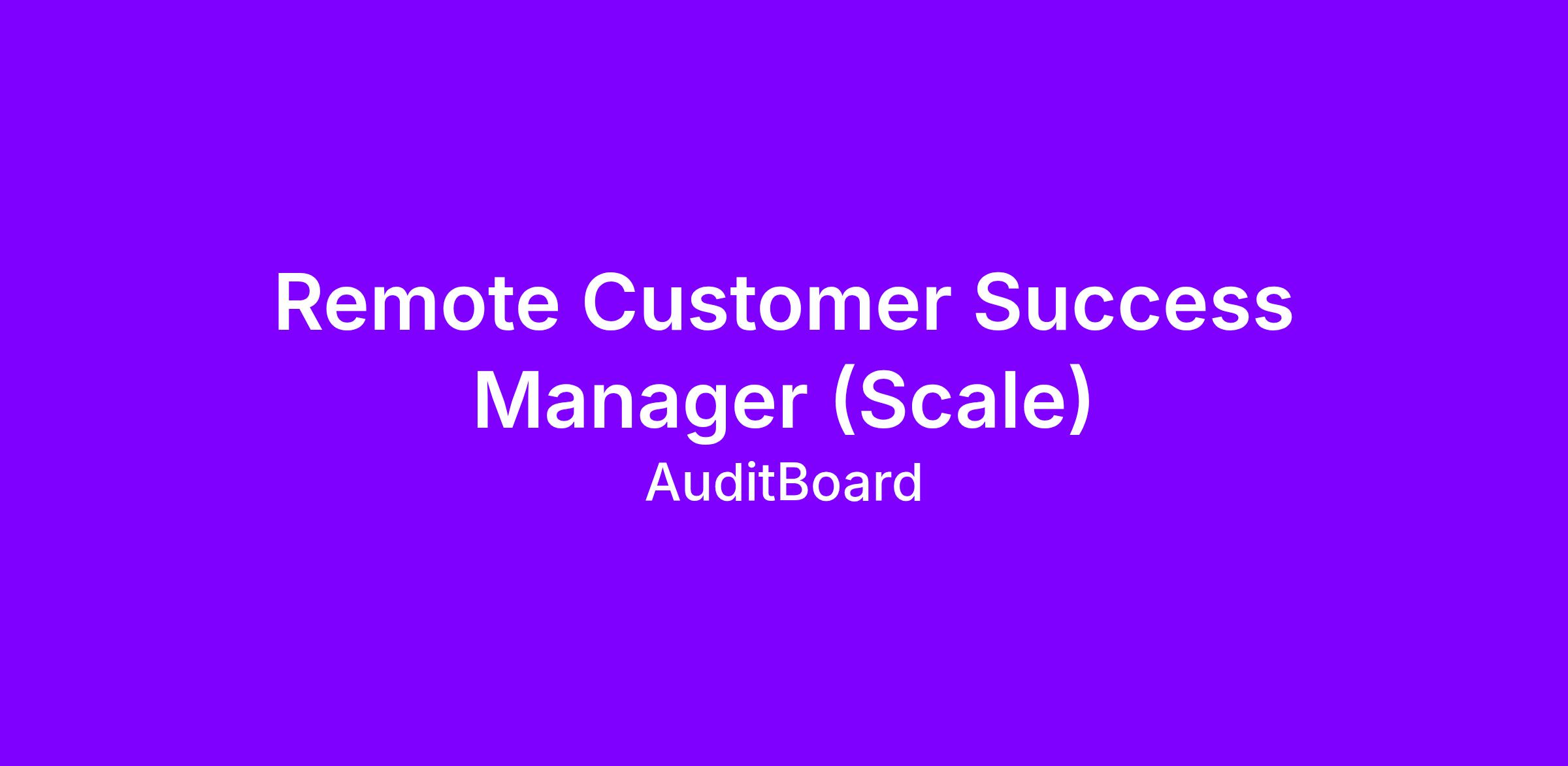 As a Scale Customer Success Manager at AuditBoard you’ll manage a large book of SaaS customers using digital engagement, automation, and data-driven strategies. This role focuses on delivering value at scale — ensuring product adoption, driving retention, and uncovering growth opportunities — while maximizing efficiency and customer experience. You’ll partner closely with Customer Marketing, Product, and Operations to support thousands of users through lifecycle programs and tech-touch engagement.