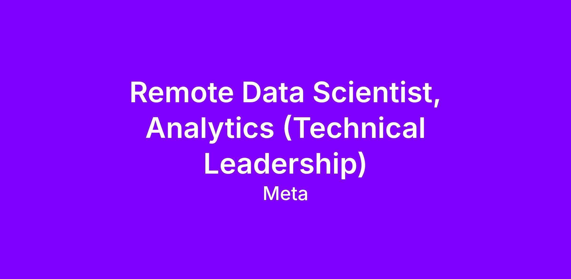 Remote Data Scientist, Analytics (Technical Leadership)