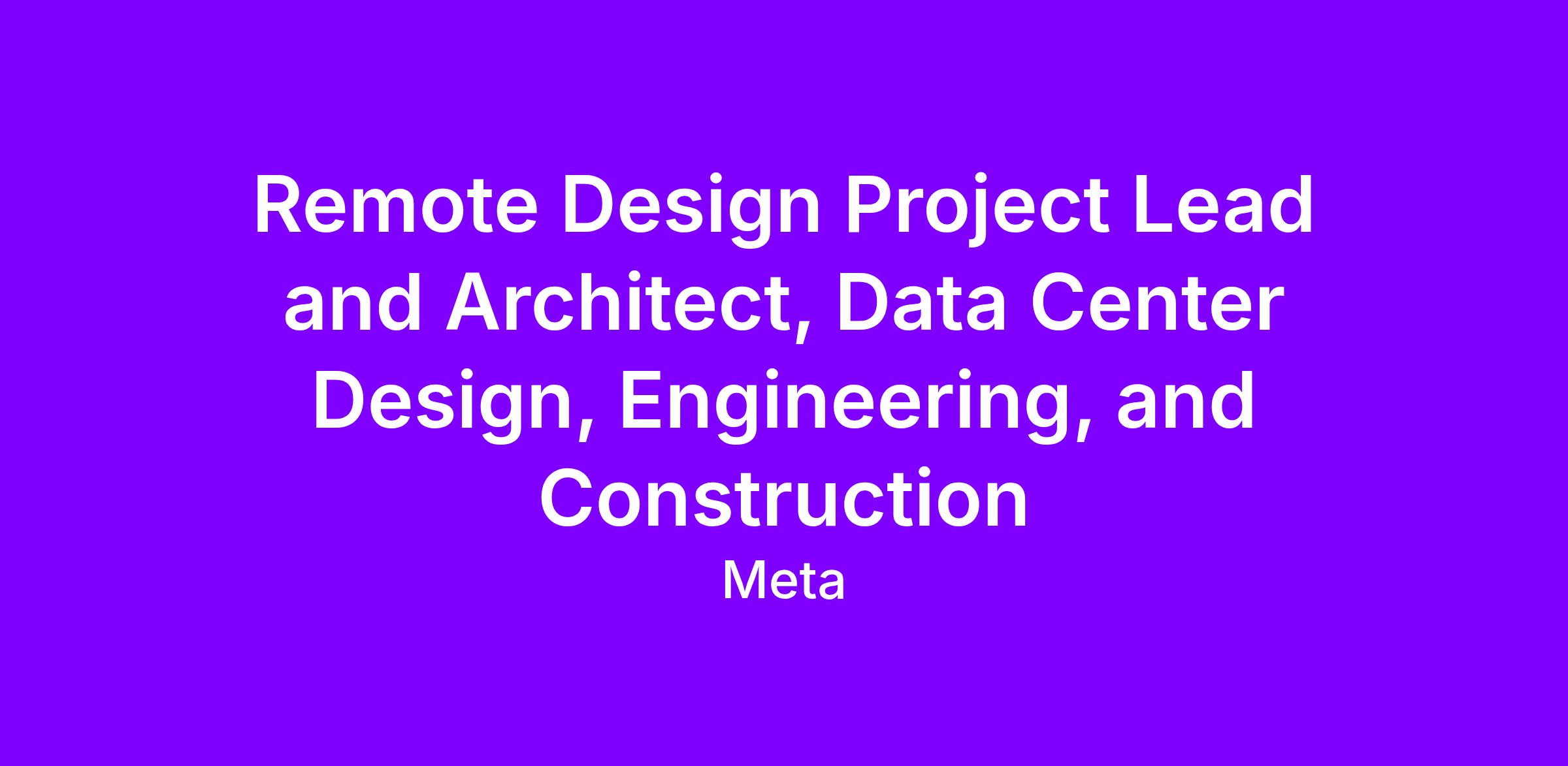 Remote Design Project Lead and Architect, Data Center Design, Engineering, and Construction