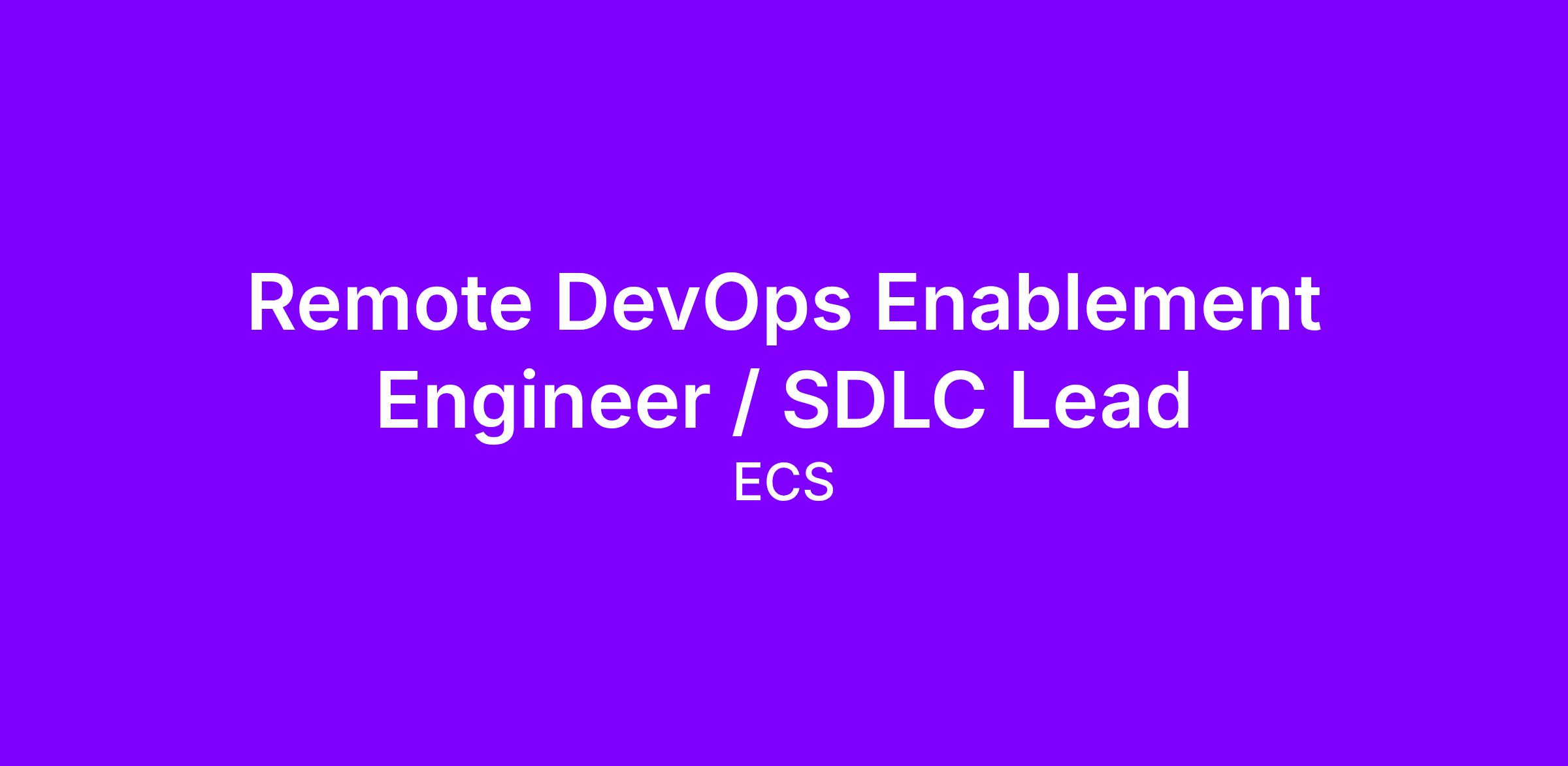 ECS is seeking a DevOps Enablement Engineer / SDLC Lead to work remotely.