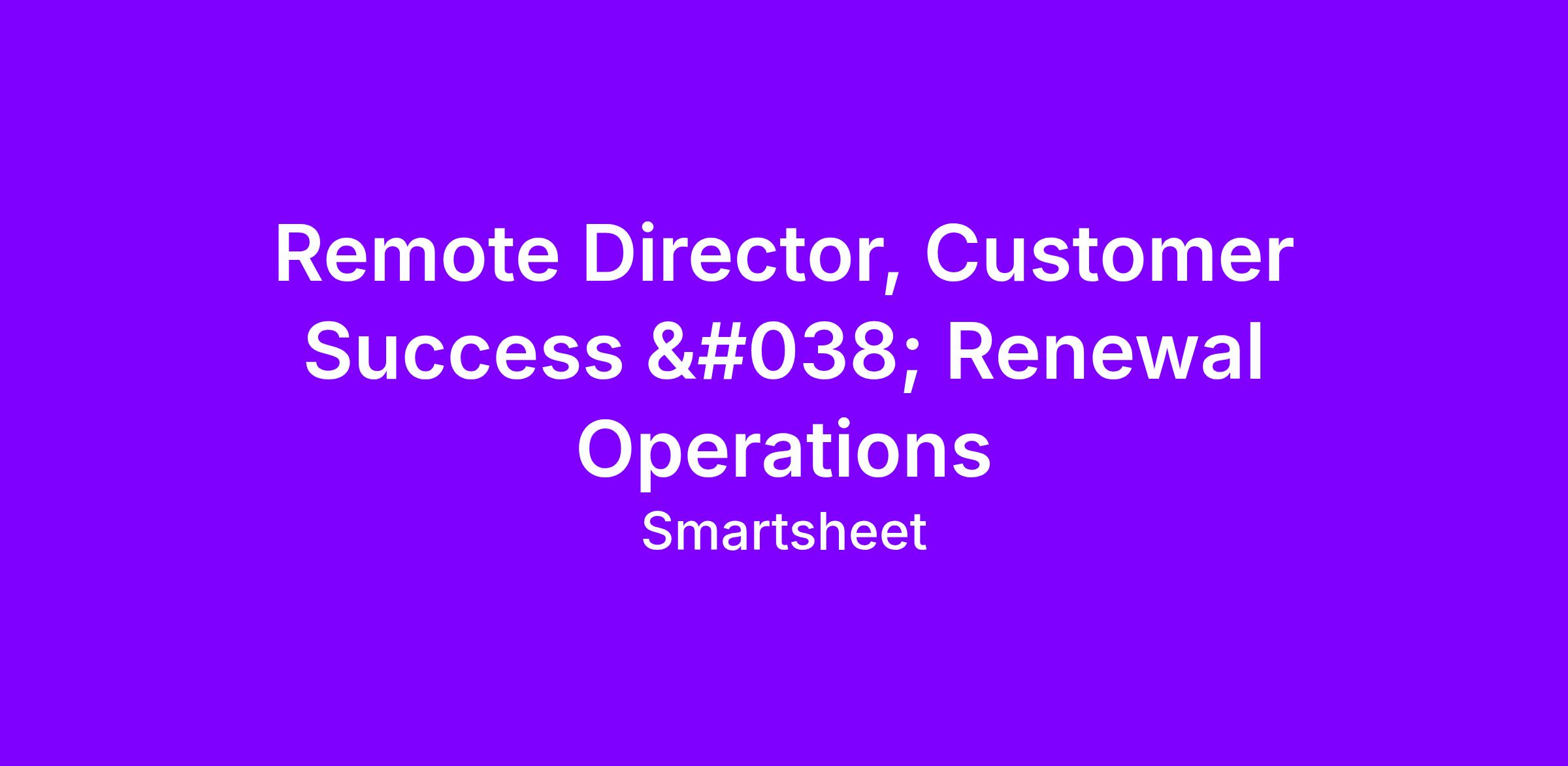 Smartsheet is seeking a Director of Customer Success & Renewal Operations to lead the design and execution of our global Customer Success and Renewals operating models. This role is responsible for converting high-level retention and growth strategies into scalable, repeatable field processes that drive customer lifetime value. You will act as a primary partner for leadership across Go-To-Market (GTM), Product, and Finance to ensure that our success and renewal motions are integrated, efficient, effective, and data-driven.