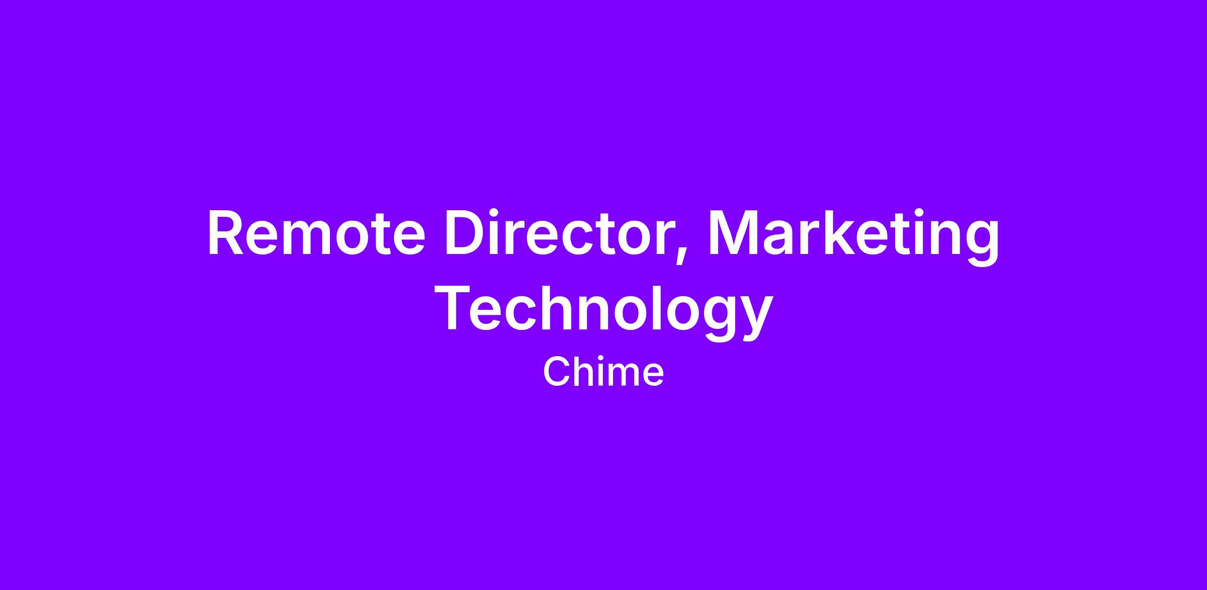 Chime is seeking an experienced Director of Marketing Technology to lead and scale our centralized MarTech organization across paid acquisition, web, lifecycle, and member engagement. This leader will own the strategy, architecture, and operations of Chime’s marketing technology ecosystem—spanning paid media technology, CMS, CRM and lifecycle platforms, DAM and brand systems, internal communications tooling, and AI-powered marketing enablement tools.