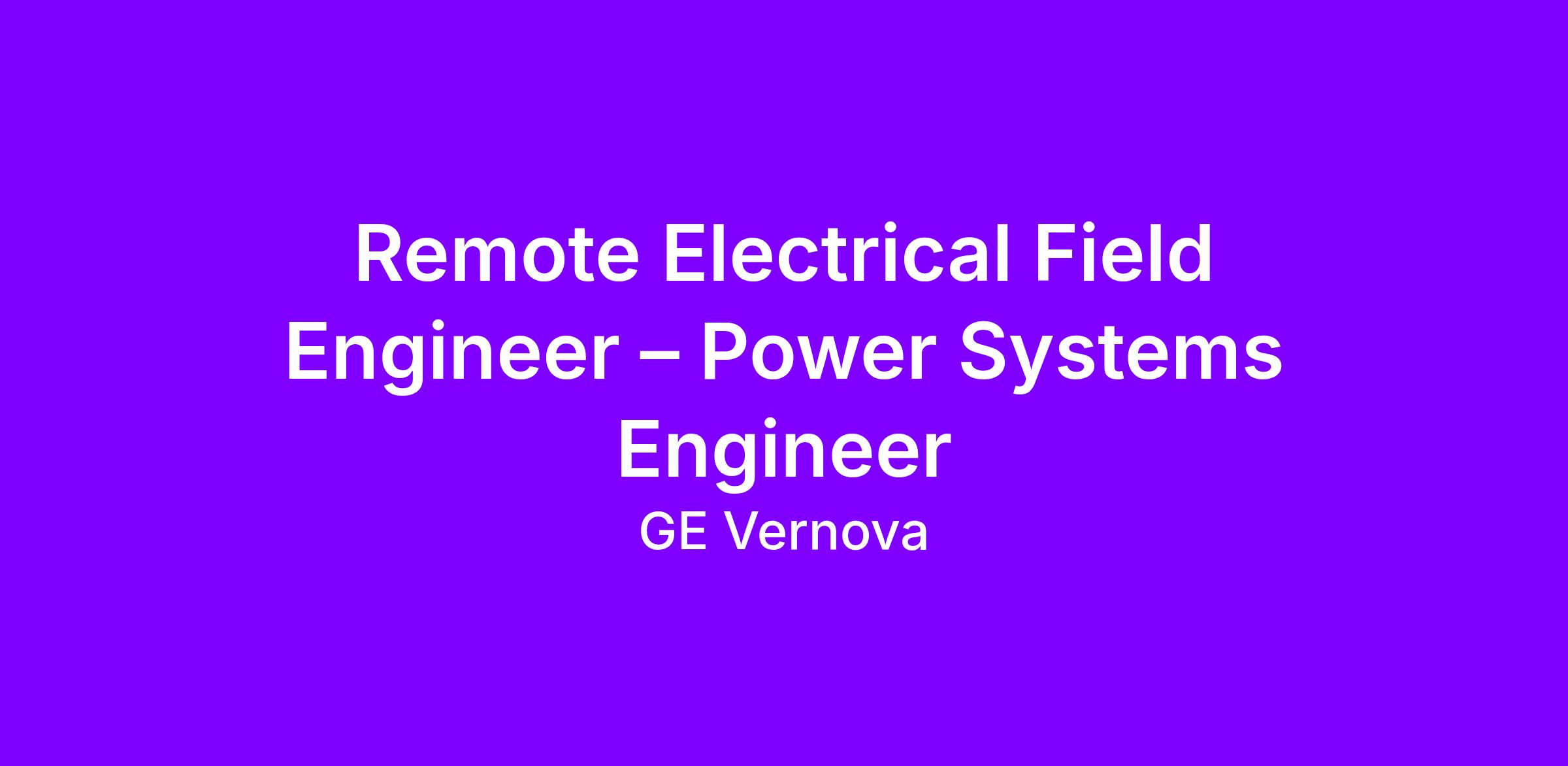 GE Vernova is looking for an exceptional Electrical Field Engineer – Power Systems Engineer to join our Field Services team based in the United Kingdom.