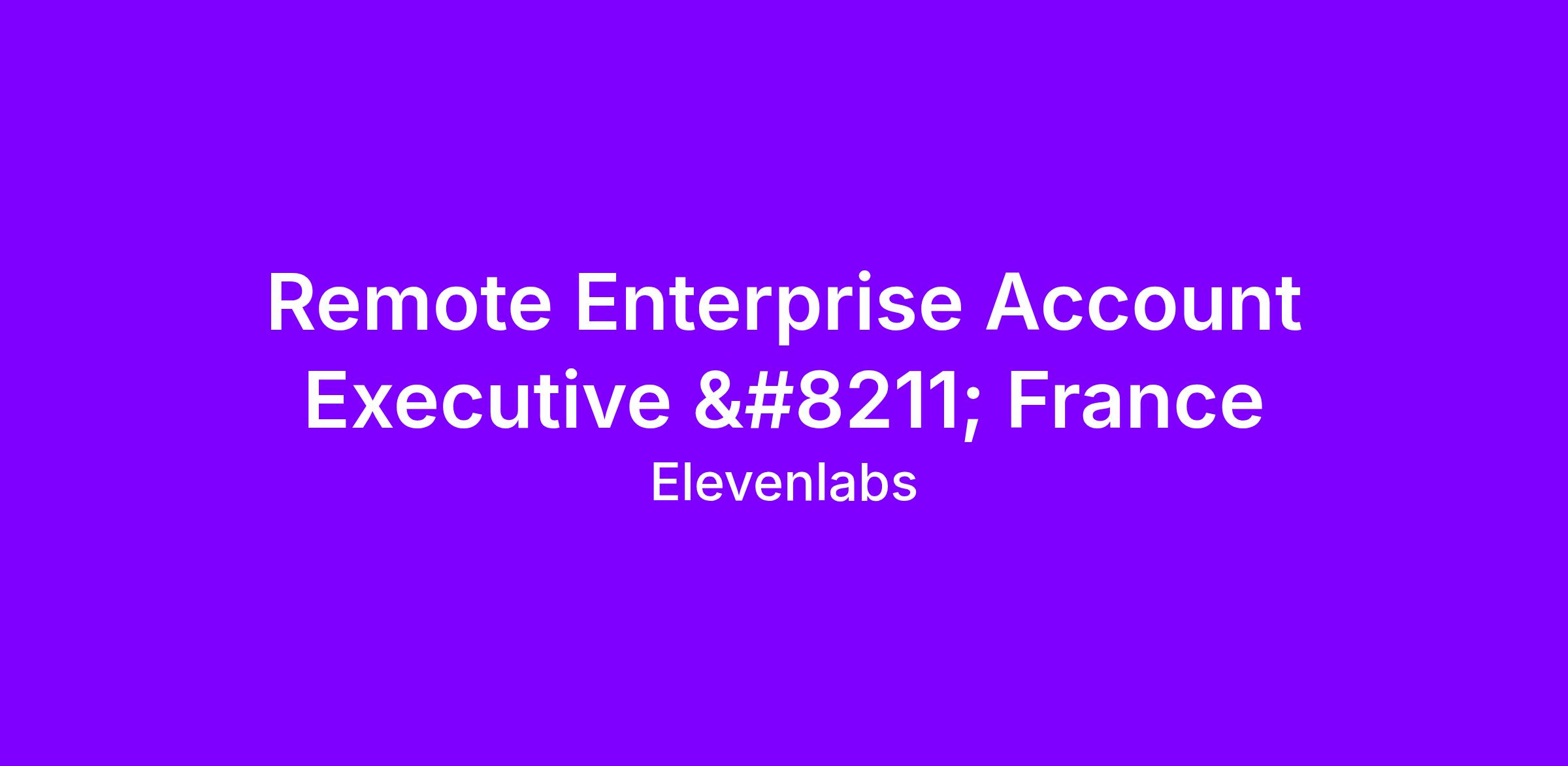 We’re looking for an experienced, motivated Enterprise Account Executive to drive ElevenLabs’ growth with CAC40 and large-scale enterprises across France. Our ideal candidate is passionate about the transformative possibilities of AI voice technology, and eager to act as a strategic partner – enabling organizations to leverage our industry-leading models and product to reimagine their customer experience, internal workflows, and monetization strategies.