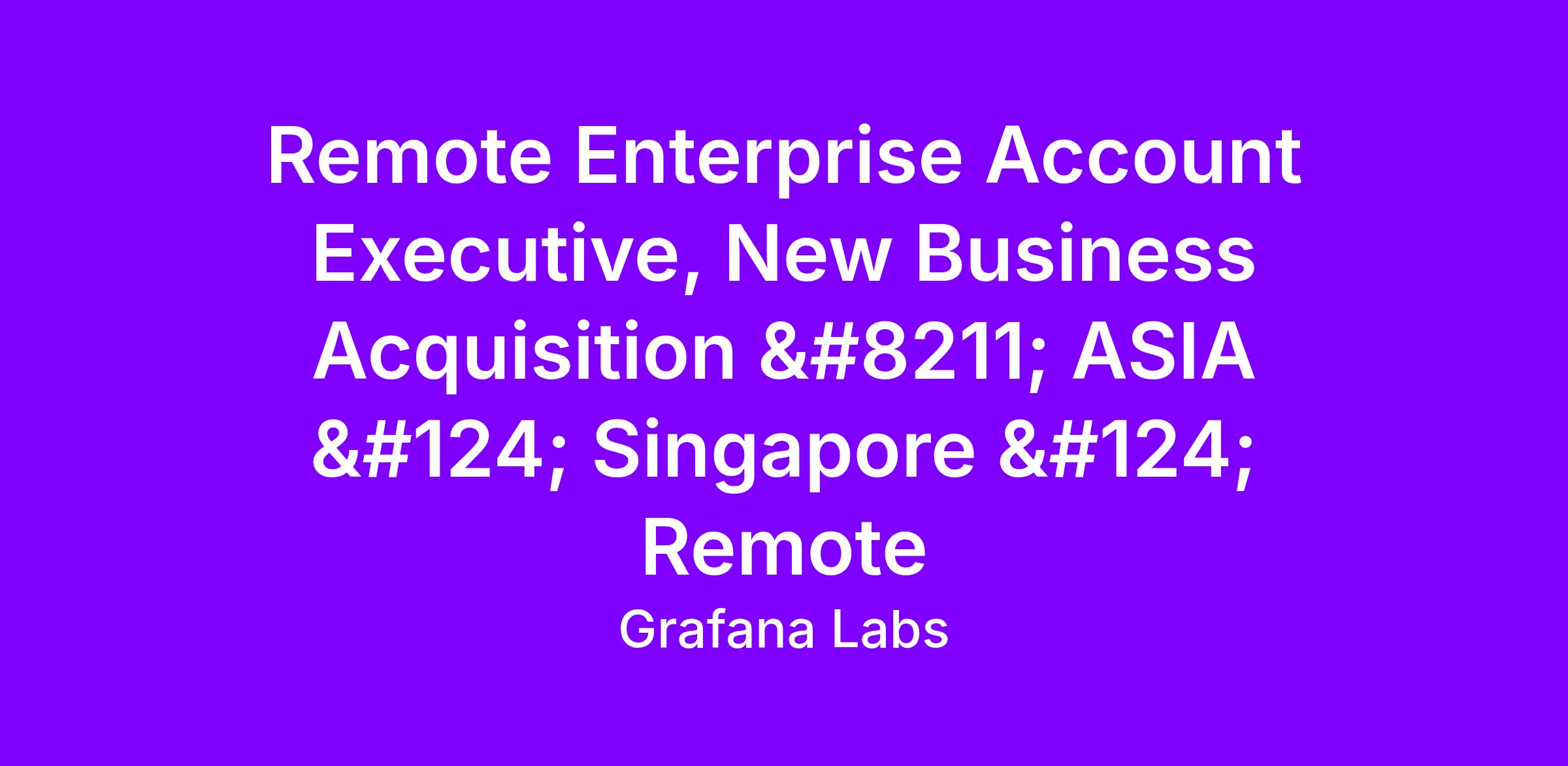 Grafana Labs is looking for an Enterprise Account Executive, Acquisition based in Singapore who will be responsible for prospecting and closing new business across the Asia region. You will identify, nurture and close opportunities with new customers, manage forecasts and track customer data. We’re strong proponents of a consultative sales approach – learn about the customer’s needs first before talking products. Your expertise will be critical in helping articulate the value of our products, work with the customer during the trial phase and hand off a strong relationship to our Growth team. Ideally, you come from a technical background and have sold technical products before.