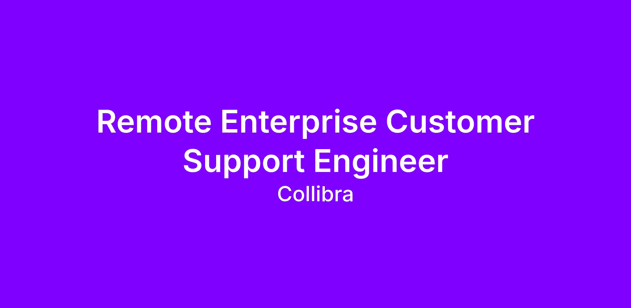 - Collibra seeks to expand our Support Engineering team with the addition of an Enterprise Customer Support Engineer who can support the most complex product issues and navigate escalations to resolution.