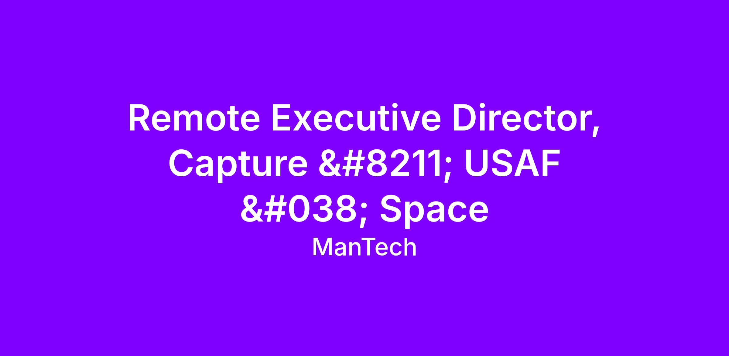 MANTECH seeks a motivated, career and customer-oriented Executive Director, Capture to join our Defense Capture Team and lead USAF and Space pursuits.