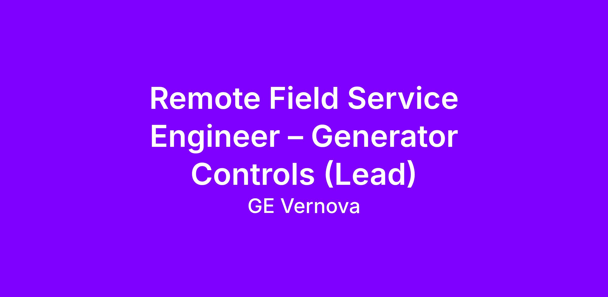 GE Vernova is seeking a Field Service Engineer – Generator Controls (Lead) to join our Regional Services team, supporting customers across Australia and the broader APAC region. This is a hands on, customer facing role focused on delivering high quality field services for generator excitation and static starter control systems.