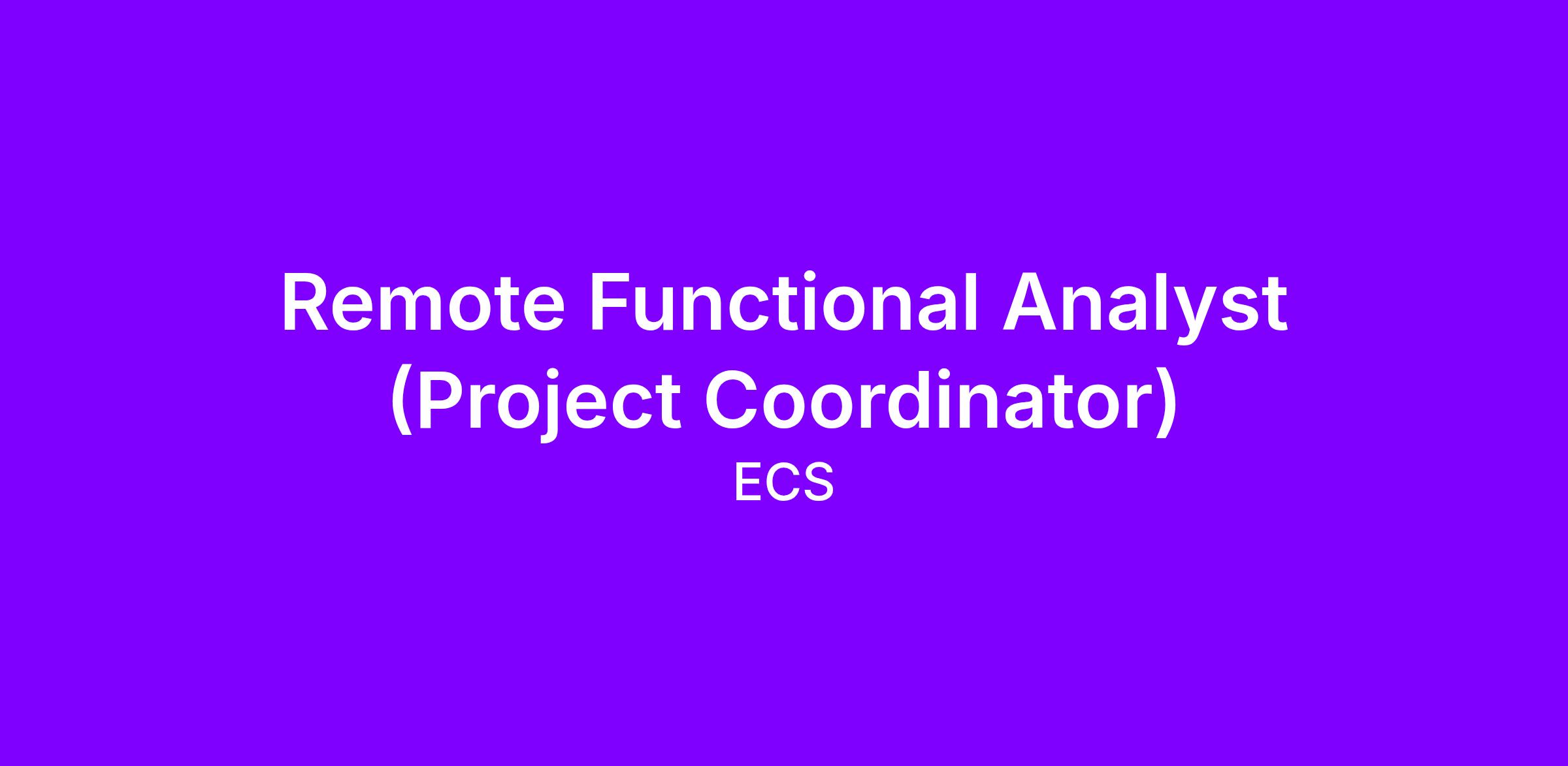 ECS is seeking a Functional Analyst (Project Coordinator) to work in our Remote office. Please Note: This position is contingent upon contract award.