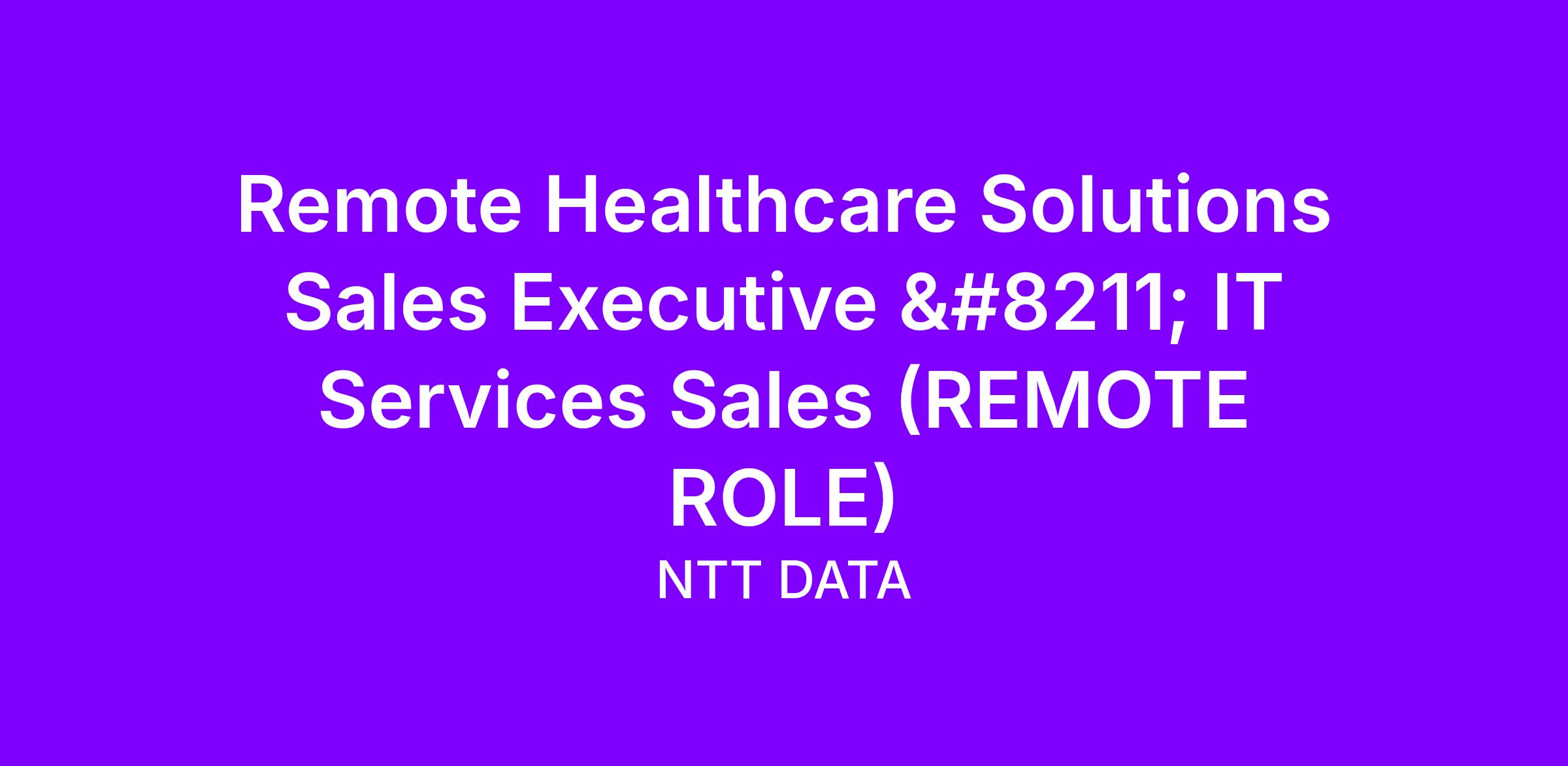 We are currently seeking a Healthcare Solutions Sales Executive – IT Services Sales (REMOTE ROLE) to join our team in Columbus, Ohio (US-OH), United States (US).