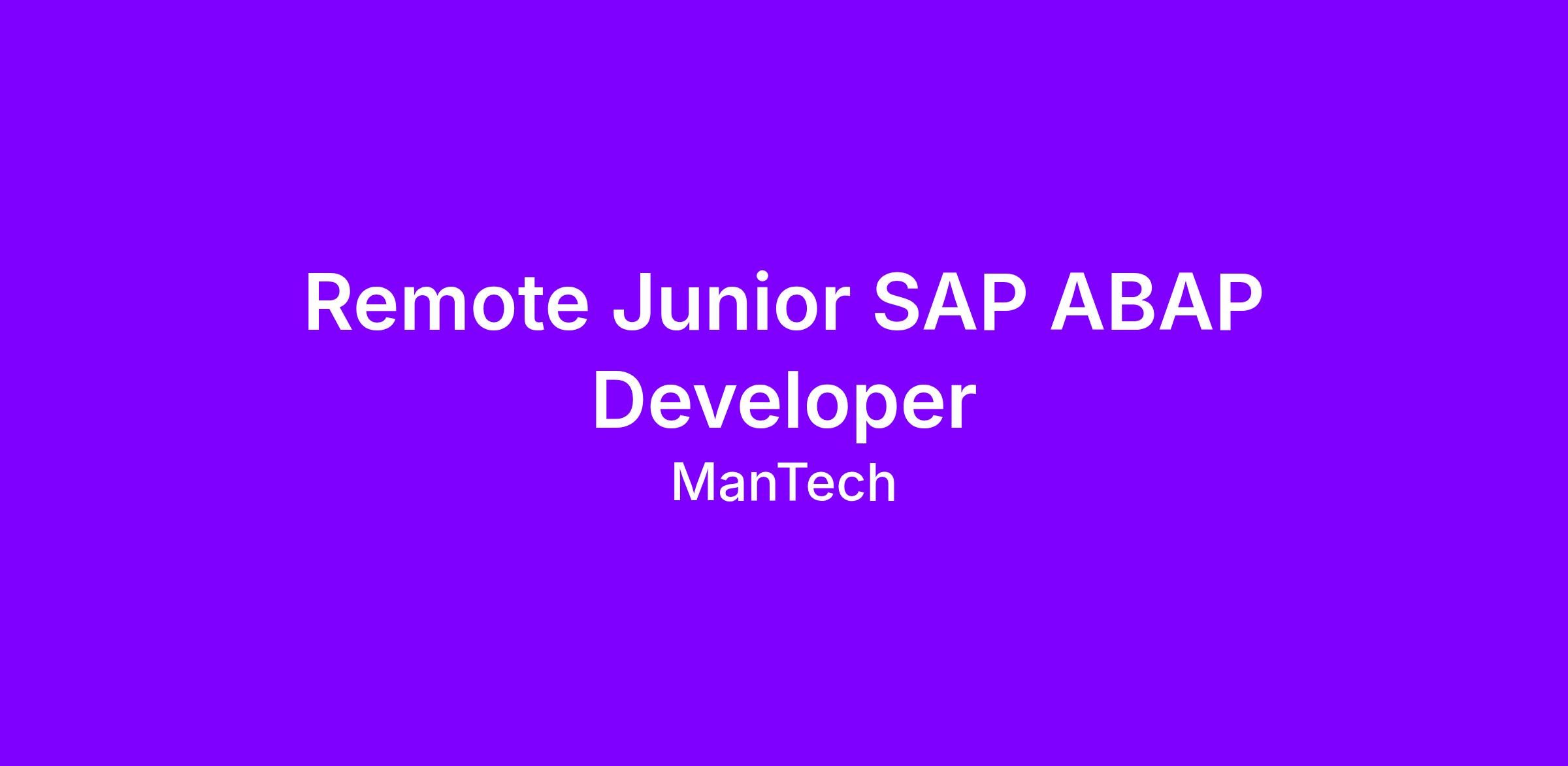 MANTECH seeks a motivated, career and customer-oriented Junior SAP ABAP Developer to join our team. This is a remote position.