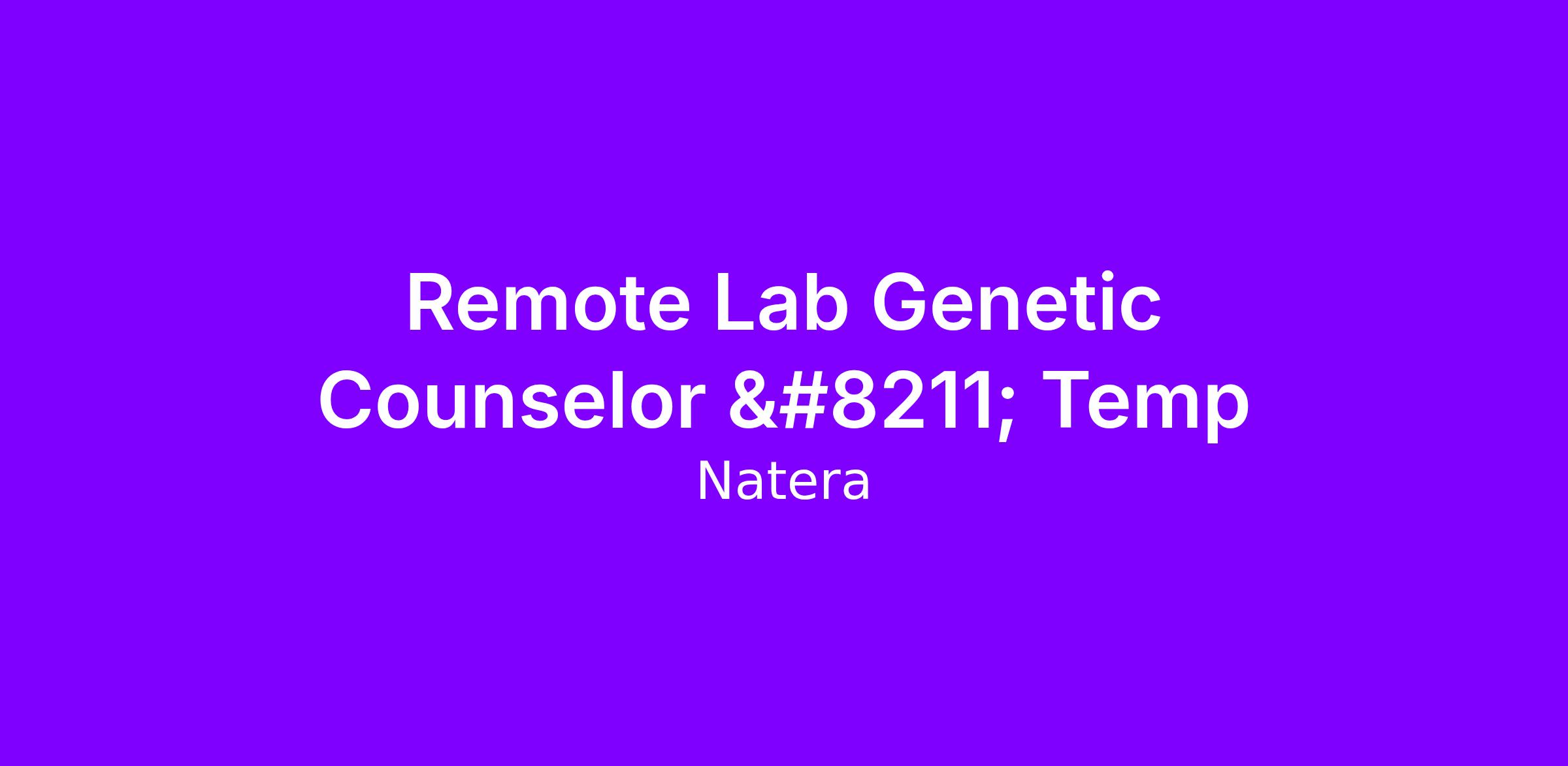 Natera’s laboratory genetic counselors serve as clinical liaisons to patients and providers regarding Natera’s test offerings.