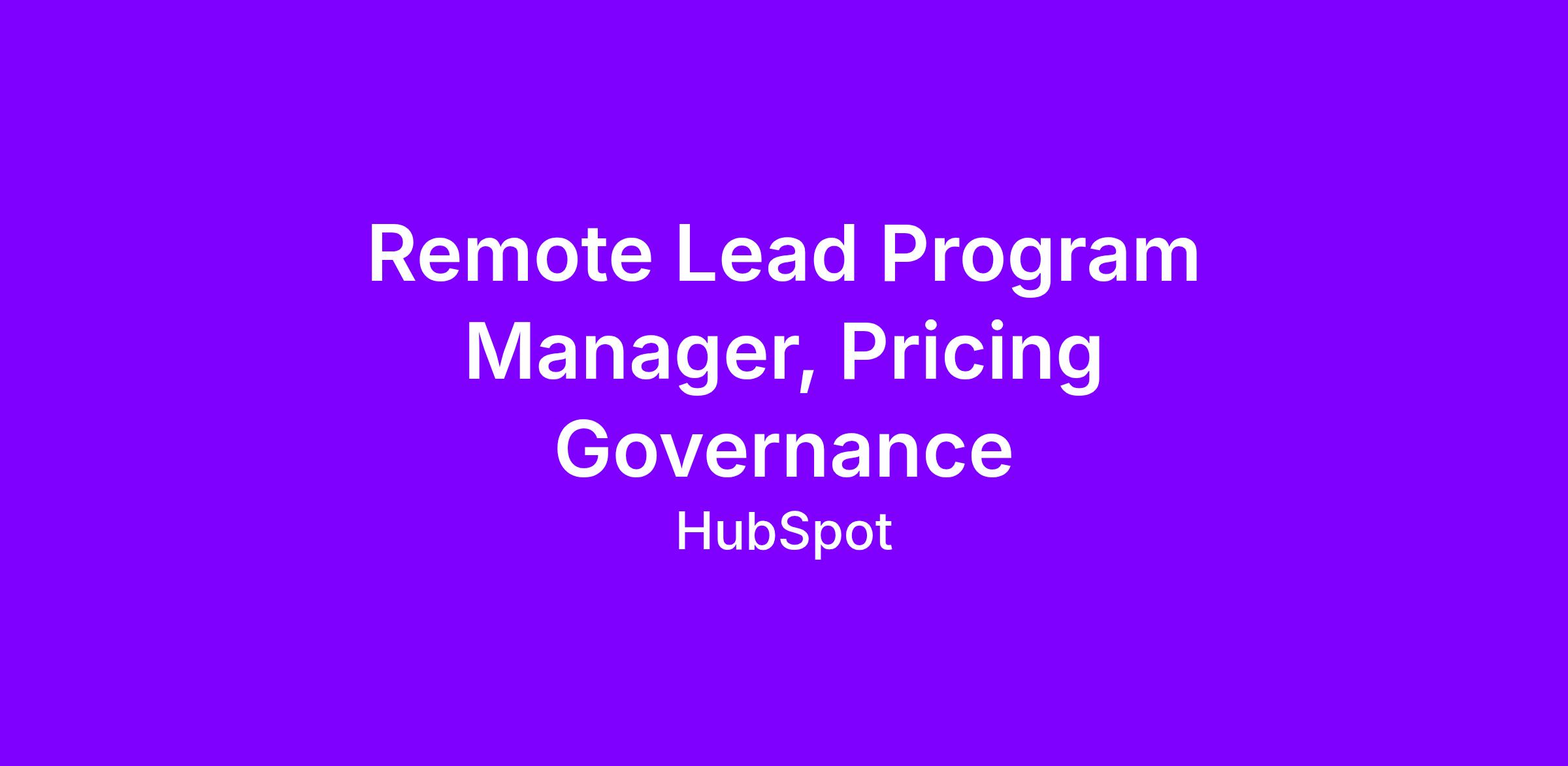 We are looking for a Lead Program Manager to partner with HubSpot’s Pricing Strategy team and Fintech product line to transform how HubSpot makes and operationalizes strategic pricing decisions that impact more than 200,000 customers worldwide.