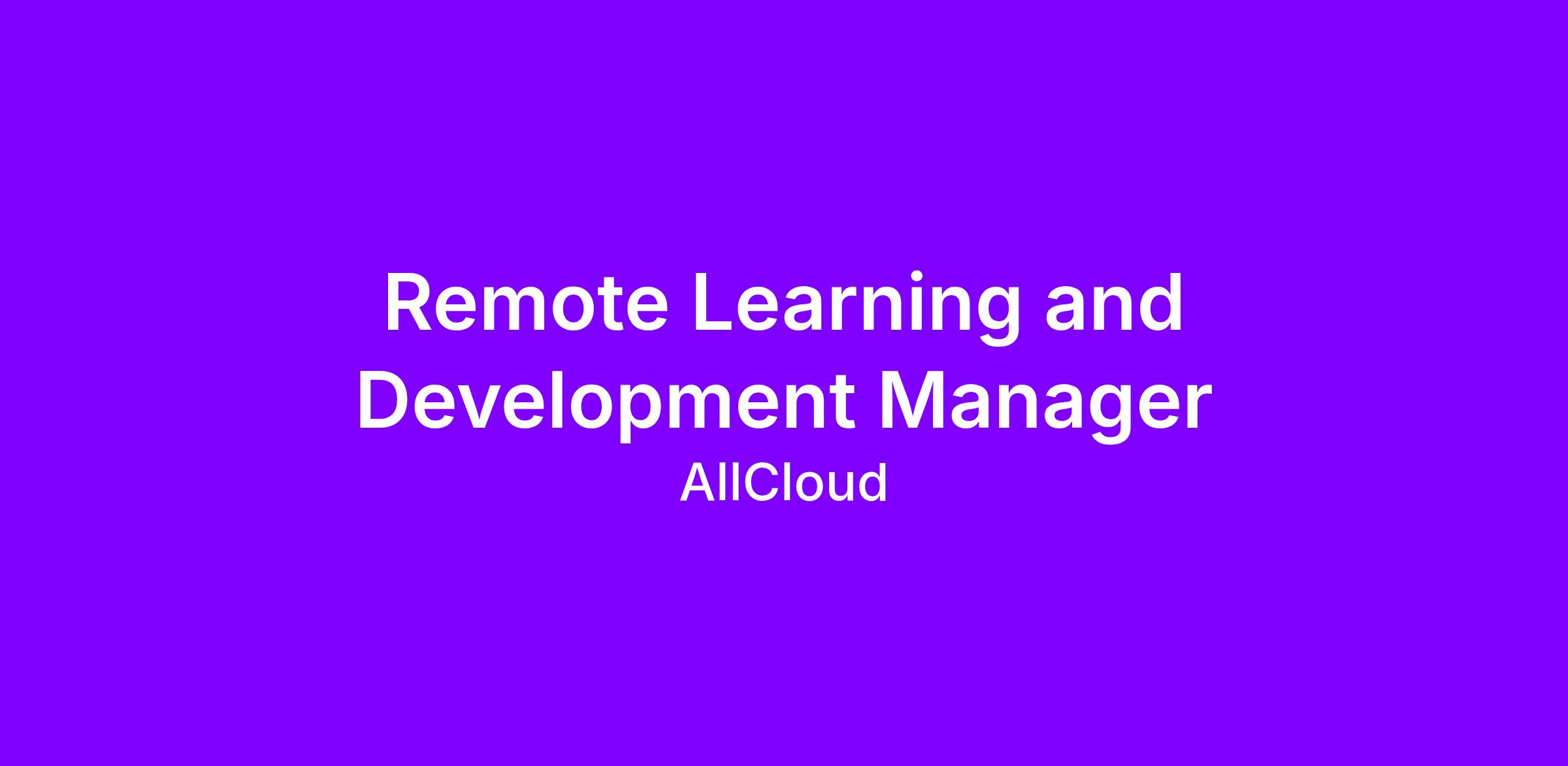 At AllCloud, the primary purpose of Learning and Development (L&D) is to provide learning opportunities, personal and professional growth, and to bring out the best of every person and the best of every team, so that we can deliver the best of AllCloud to our clients. As the L&D Manager, you will actively lead projects focused on aligning learning and development solutions that align with the business priorities of the practice. Our team is experiencing high growth and we are looking for professionals with a mix of L&D and project management experience to join us!