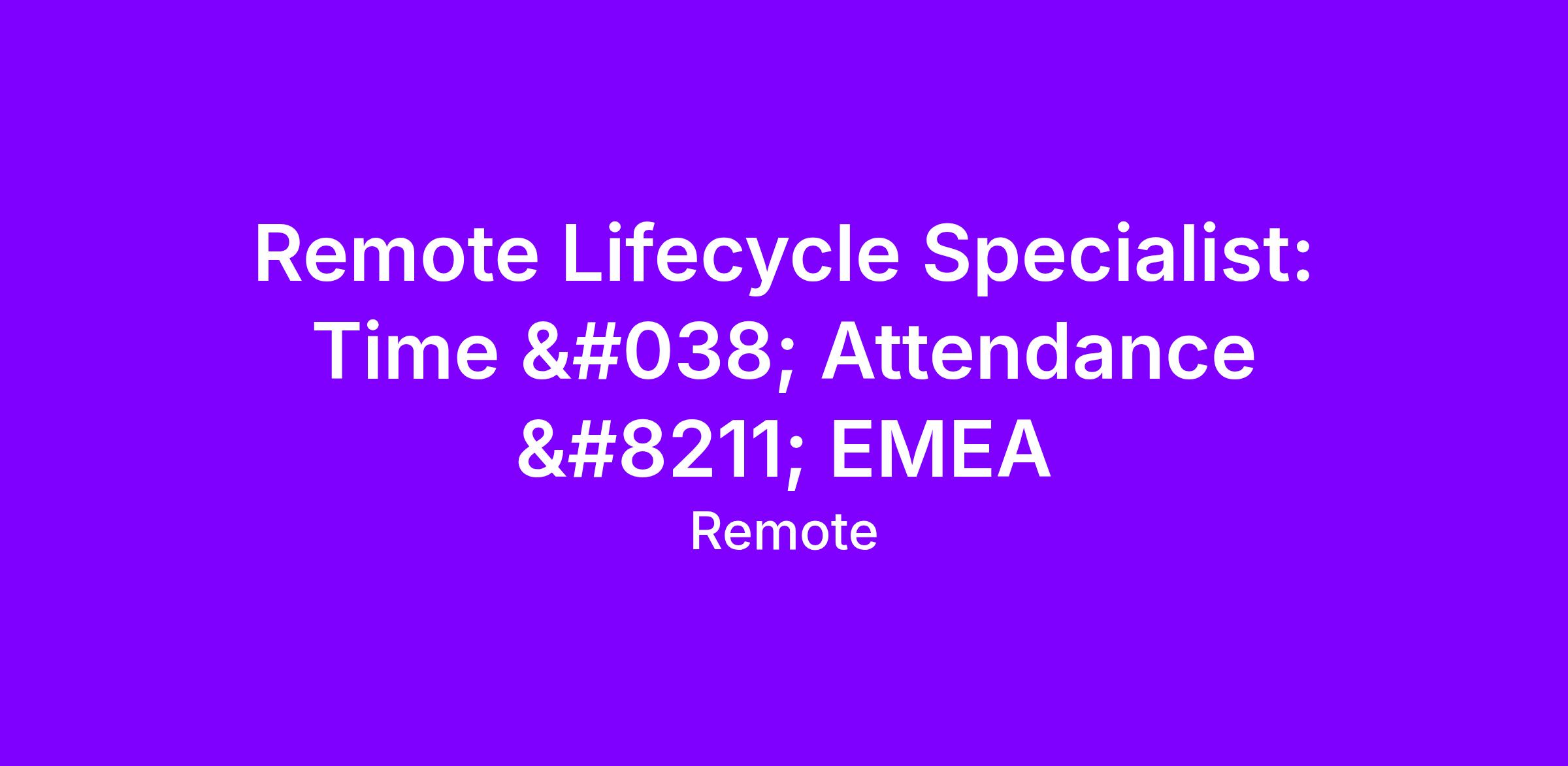 - You’ll report to: Manager, Lifecycle Time & Attendance