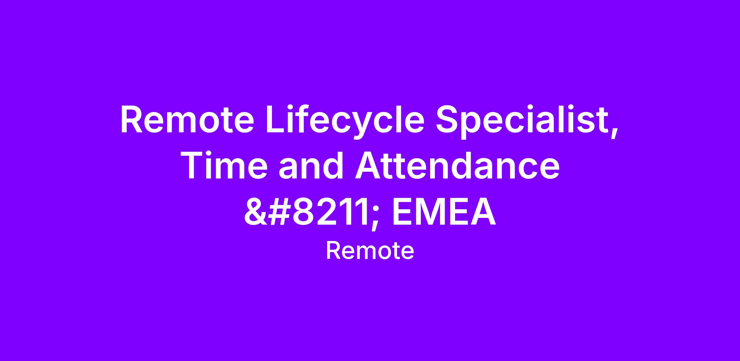 You’ll report to: Manager, Lifecycle Time & Attendance