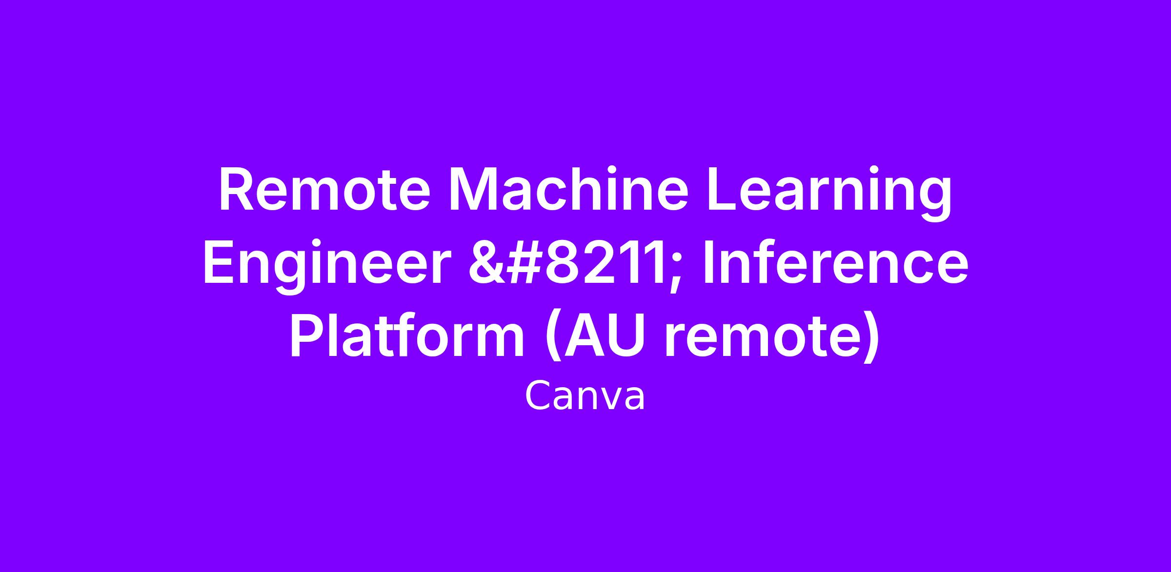 You likely have experience working with backend systems and some exposure to deploying or supporting machine learning models in production. You’re comfortable collaborating across teams and are eager to learn and grow in a fast-paced, product-driven environment. Most importantly, you bring a growth mindset and a desire to help shape the future of AI at Canva.