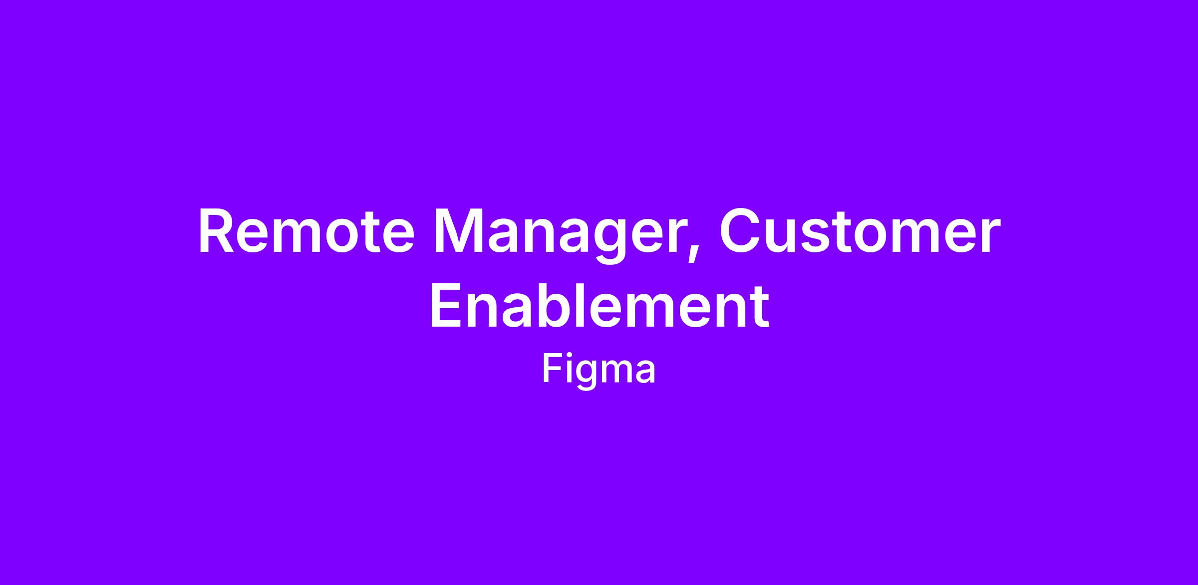 As the Manager, Customer Enablement, you will lead a team of CEMs who partner deeply with select Mid-Market, Enterprise, and Strategic customers. You’ll help shape the strategy of the CEM team, coach and develop individual contributors, and contribute to the broader goals of Figma’s Customer Experience organization. We’re seeking someone who has helped scale post-sales functions in high-growth SaaS environments and is deeply motivated by helping customers succeed and realize business value by using our platform.