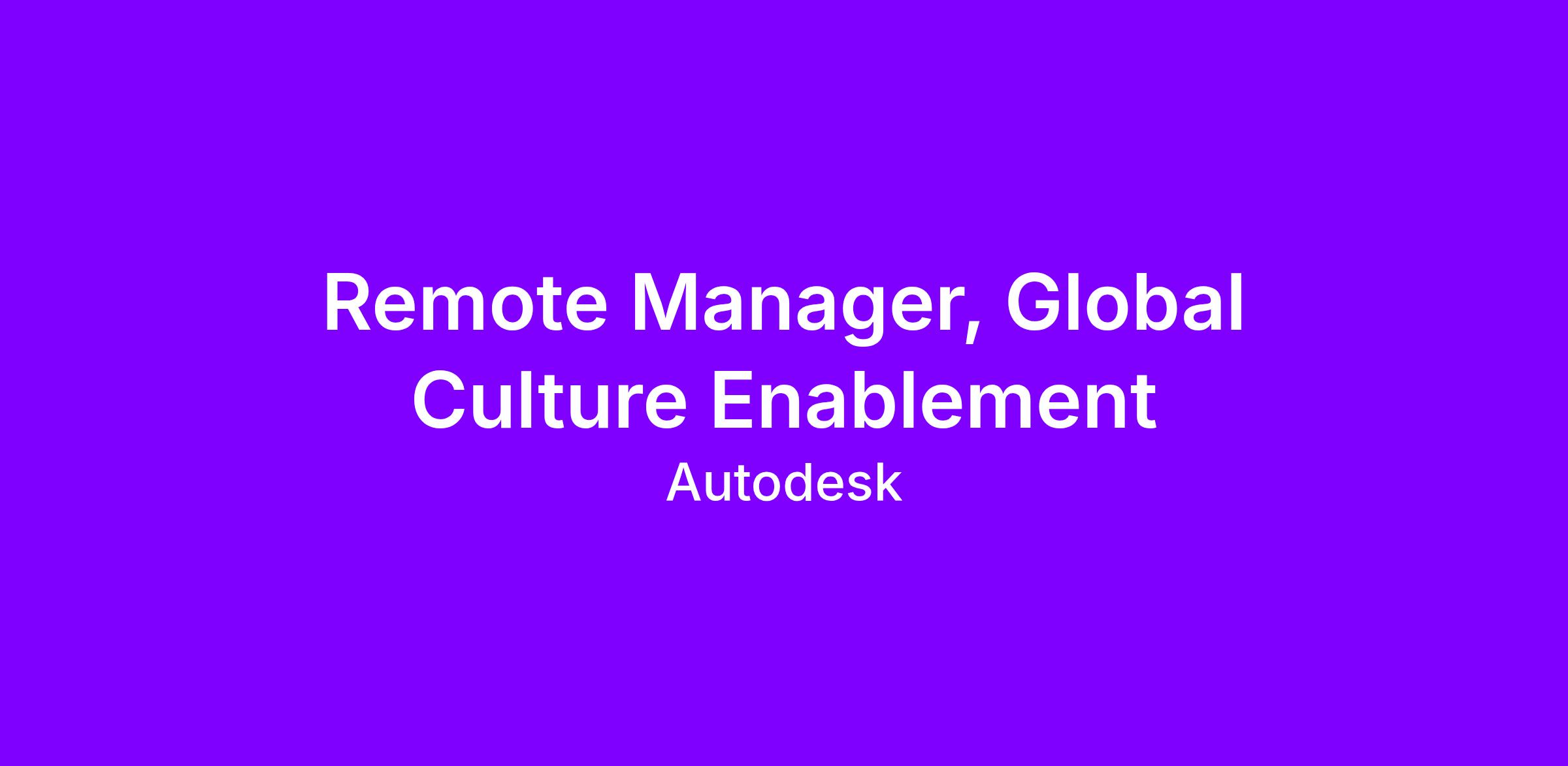 The Autodesk Global Culture & Belonging (GCB) team leads culture evolution across Autodesk, bringing our company values and the One Autodesk way of working to life for employees worldwide. We are excited to introduce a new role: Manager, Global Culture Enablement, responsible for leading high-impact culture initiatives that empower Autodeskers to put One ORBIT into action in meaningful, measurable ways.