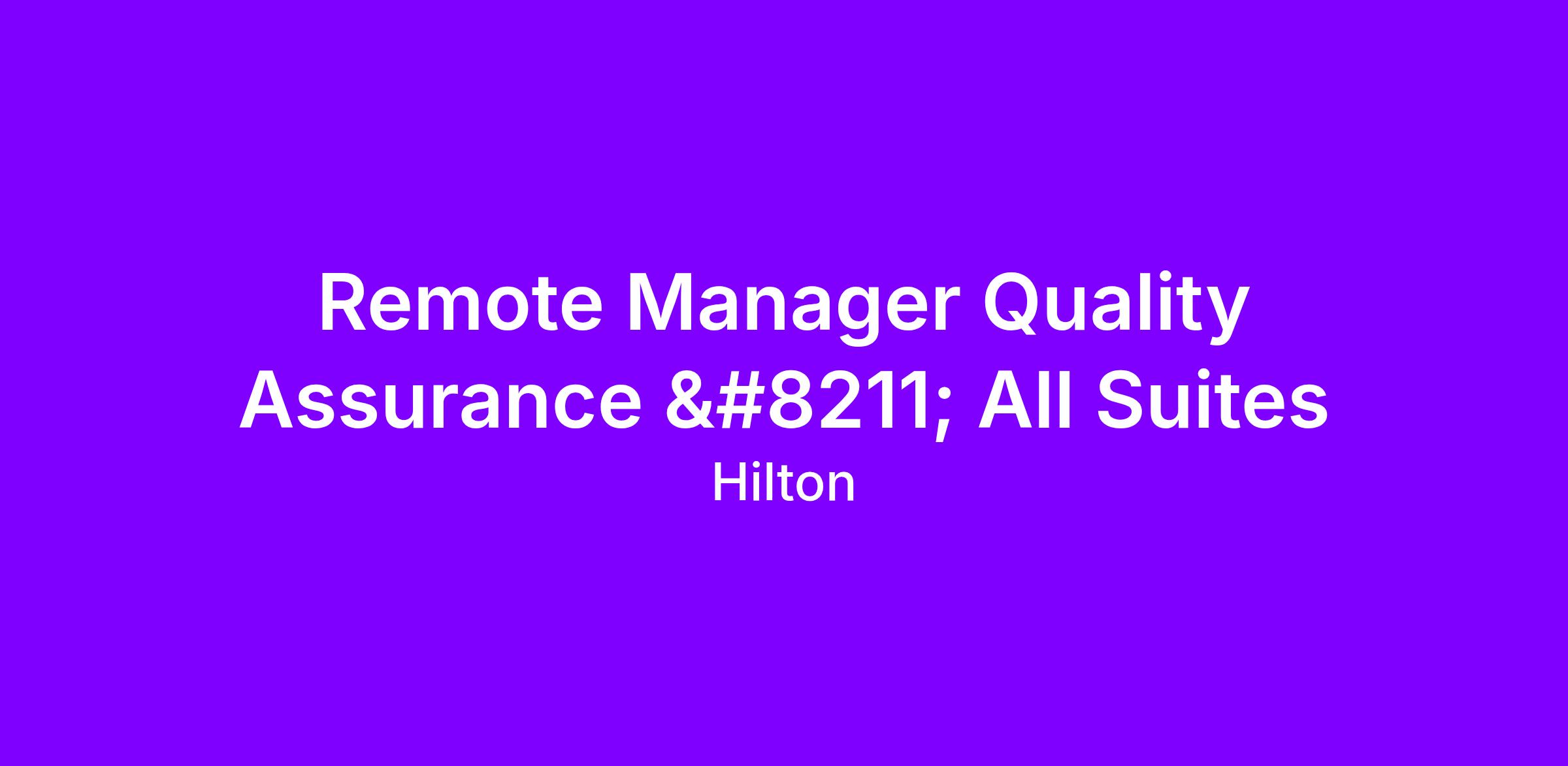 Are you passionate about partnering with hotel leaders to uphold Brand Standards and elevate the guest experience? As a Manager, Quality Assurance (QA) Auditor, you’ll help strengthen and grow Hilton’s portfolio. Reporting to the Area Manager, Quality Assurance, you will oversee a territory of 100+ hotels, conducting comprehensive audits to ensure cleanliness, safety, and adherence to brand standards.