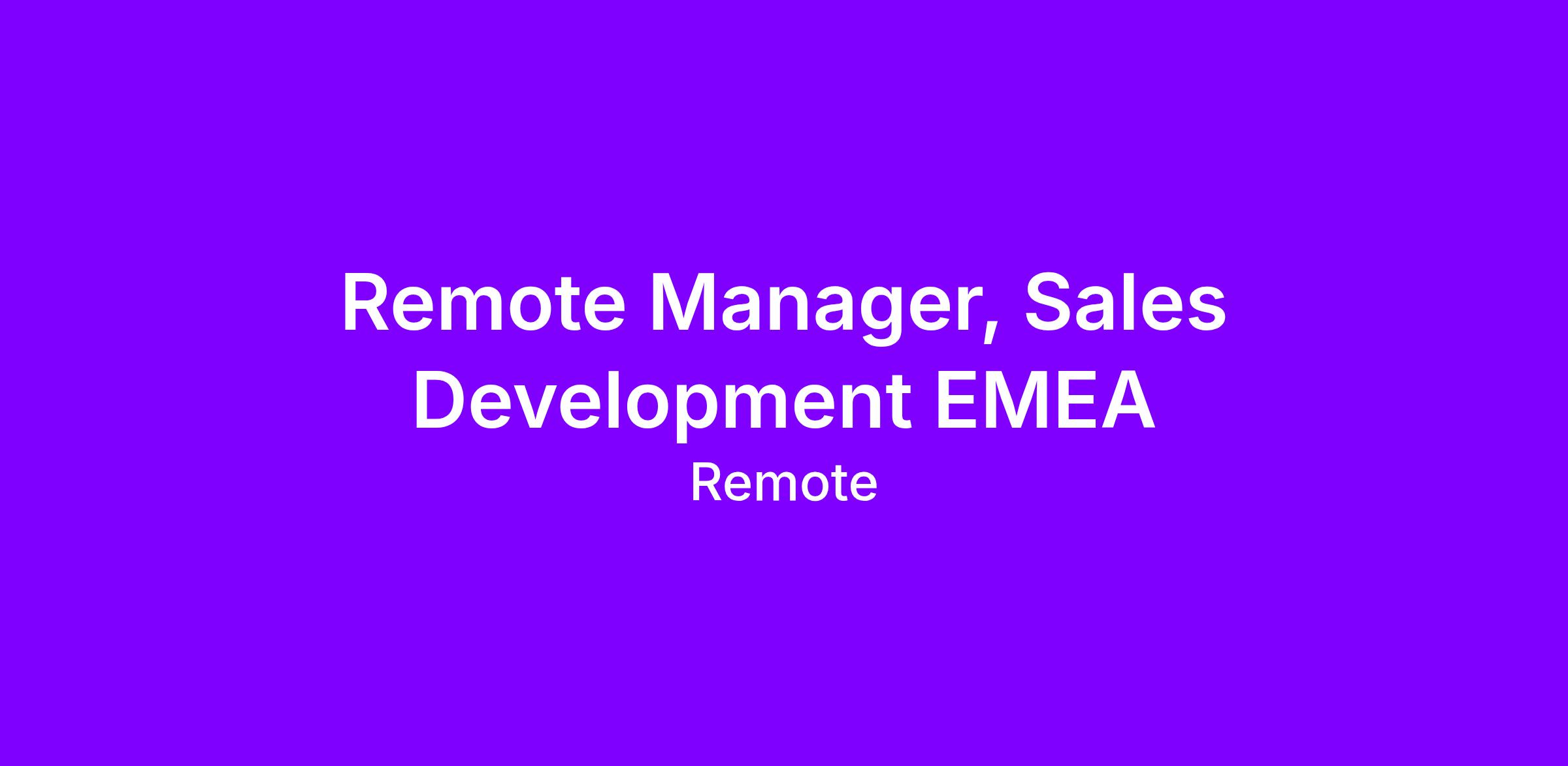 This is an exciting time to join Remote and make a personal difference in the global employment space as a Sales Development Manager, joining our Sales team and supporting our EMEA based Outbound Sales Development Representatives.