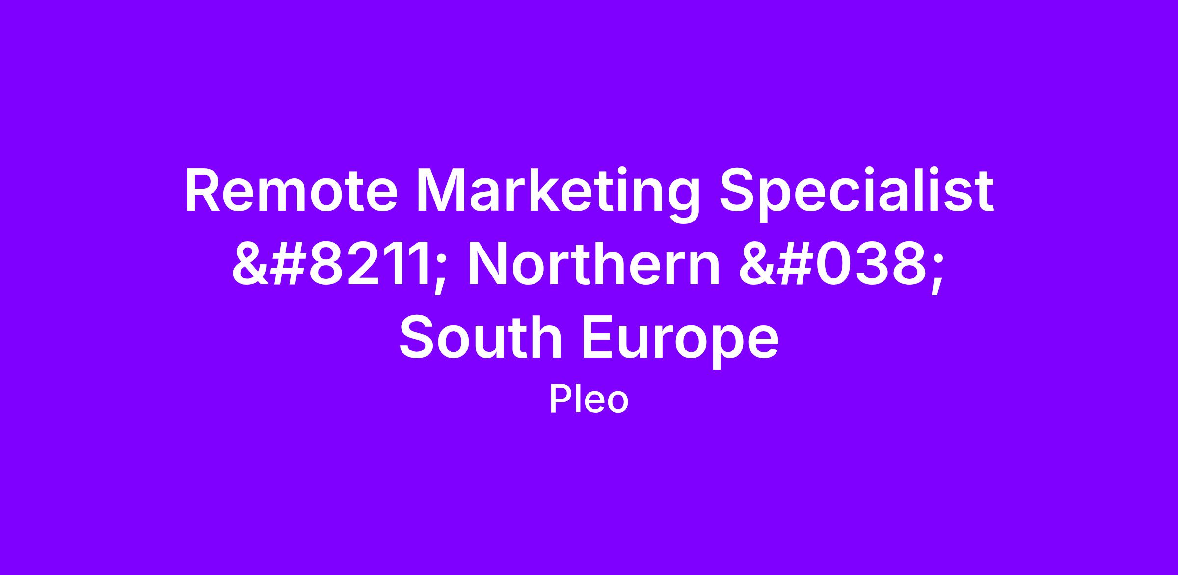 We’re looking for a Marketing Specialist – Northern & South EU to join our Integrated Marketing team at Pleo. In this role, you’ll help execute and scale marketing initiatives across our priority European markets (specifically UKI, the Nordics, and Spain) while contributing to our broader international marketing programs.