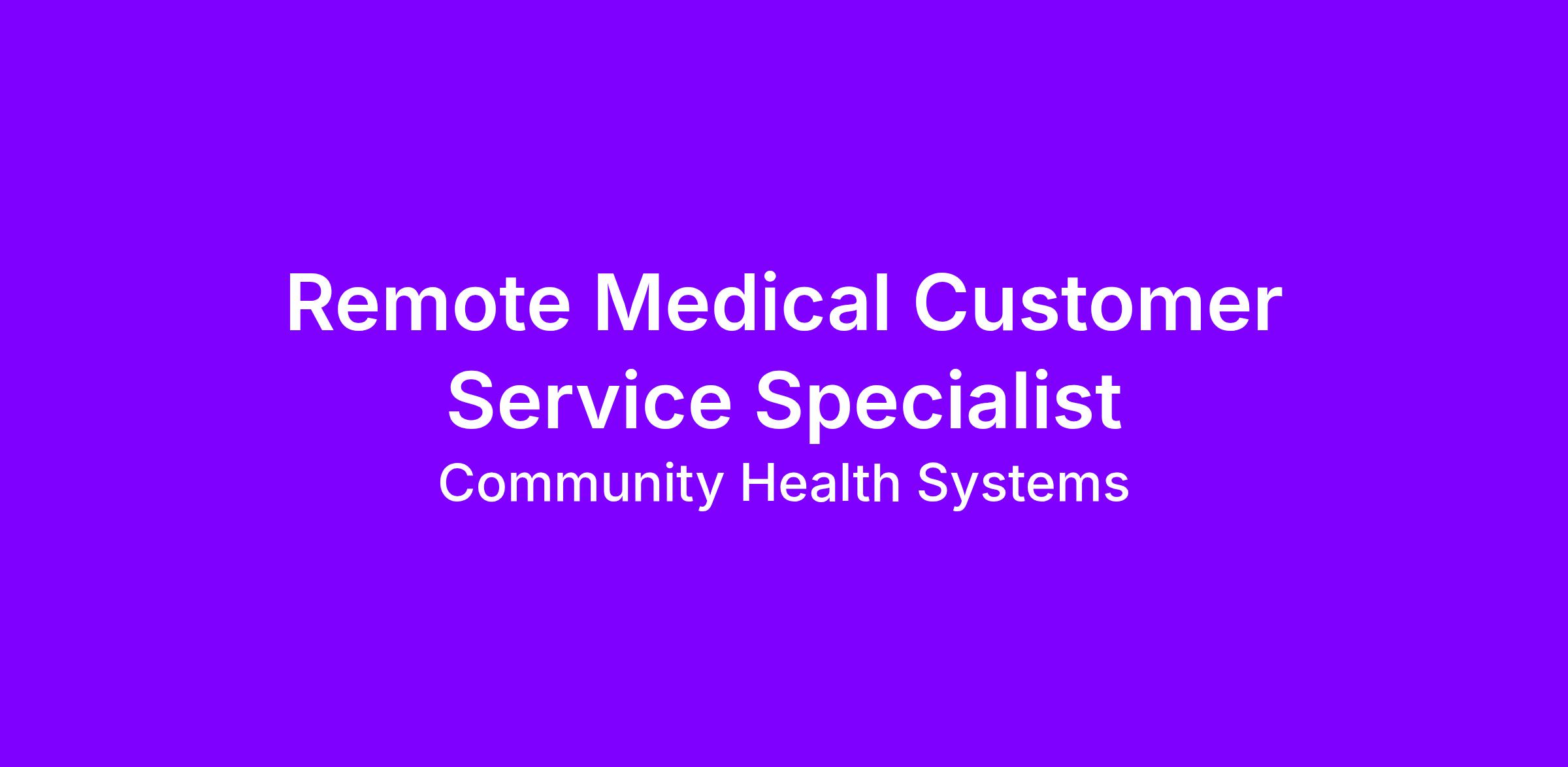 As a Remote Customer Service Specialist at Community Health Systems (CHS) – Shared Services Center, you’ll play a vital role in quality healthcare, building enduring relationships with our patients, and providing value for the people and communities we serve.