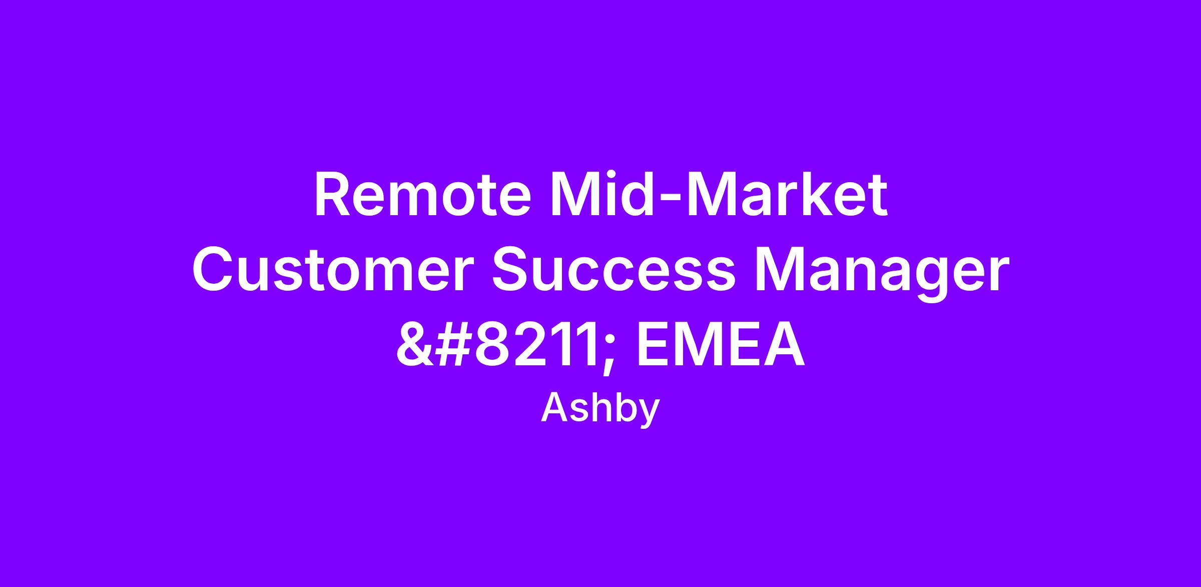 As a member of our Customer Success team, you will help us continue to grow our High Touch Mid-Market Customer Success function. In this role, you’ll implement, train, and support the adoption of Ashby with customers across the region, partnering closely with a talented group of four CSMs on the EMEA Mid-Market team.