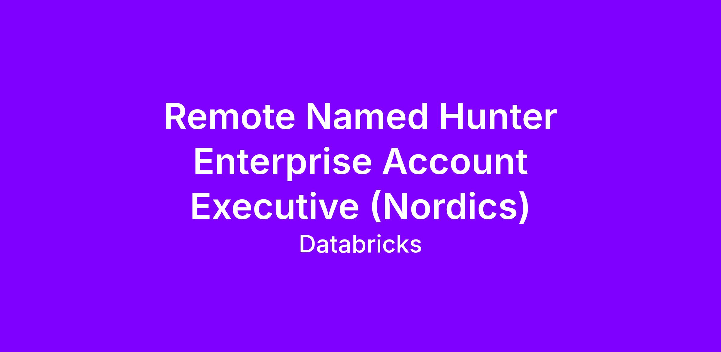 We are looking for a Named Enterprise Hunter Account Executive based in Copenhagen, Denmark, to join the team to maximise the phenomenal market opportunity that exists for Databricks across the Nordics. Reporting to the Director of Enterprise Sales, you will be responsible for driving strategic growth and expanding our footprint across the region’s most critical enterprise accounts.