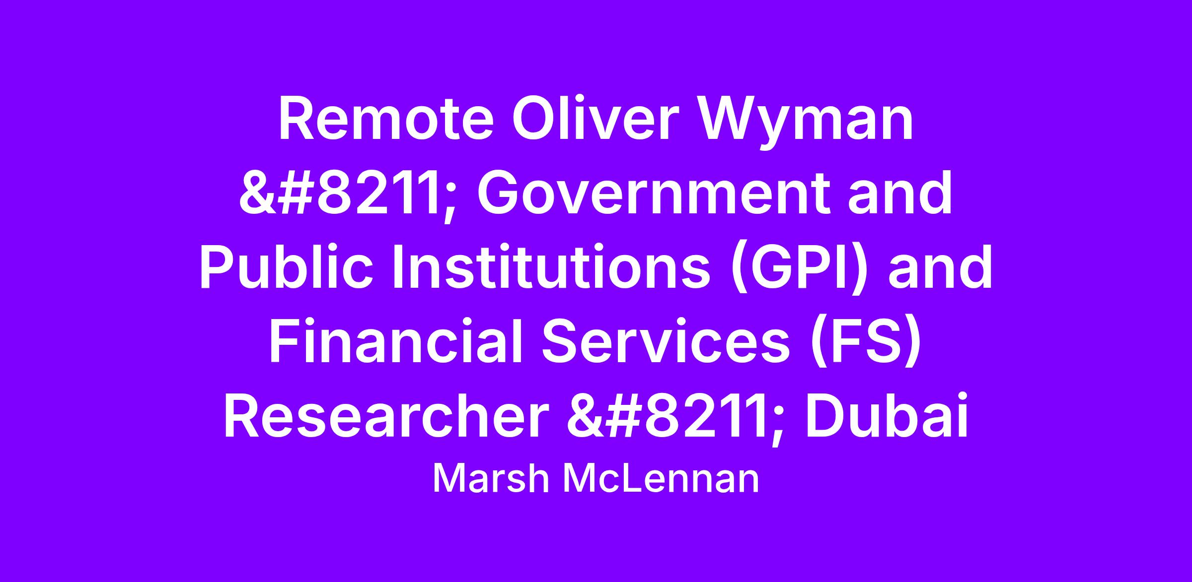 We are seeking a research professional to join the Oliver Wyman Knowledge Services department. The professional will work closely with partners and consultants in the India, Middle East & Africa Region on the Government and Public Institutions (GPI) and Financial Services (FS) sectors. Our work spans the spectrum of societal issues, including economic development, cost management, tax, security, public sector excellence, education, labor, and governance.
