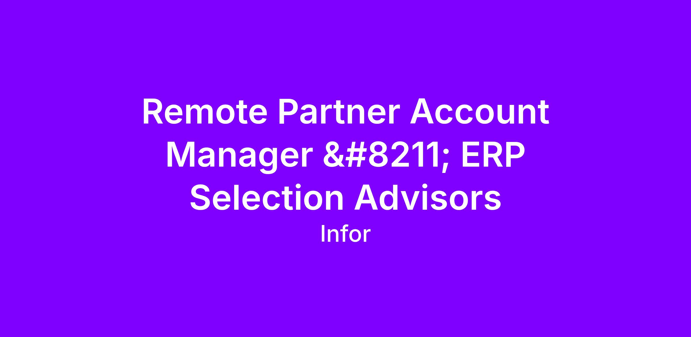 The Partner Account Manager (PAM) is aligned to strategic enterprise software selection advisors, who actively guide companies through choosing and implementing enterprise-wide transformational platforms, including ERP (Enterprise Resource Planning). The PAM is accountable for developing, nurturing, enabling and leading B2B relationships with these influential partners. The PAM will drive engagement with managed partners and Infor field sales for business planning, execution and governance. This role manages the partner go-to-market strategy, to select, enable, and empower key partners to drive success through business planning and demand generation. The PAM will own the full partner sales cycle including partner alignment through to opportunity execution and partner growth. A Day in the Life Typically Includes: