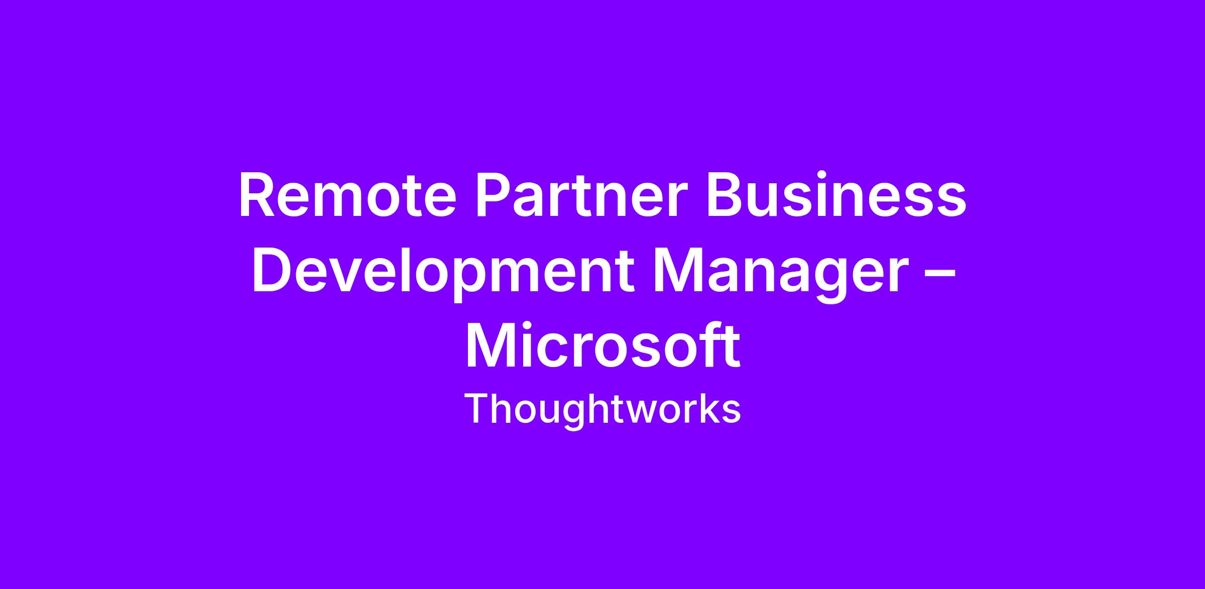 Partner Business Development Manager – Microsoft