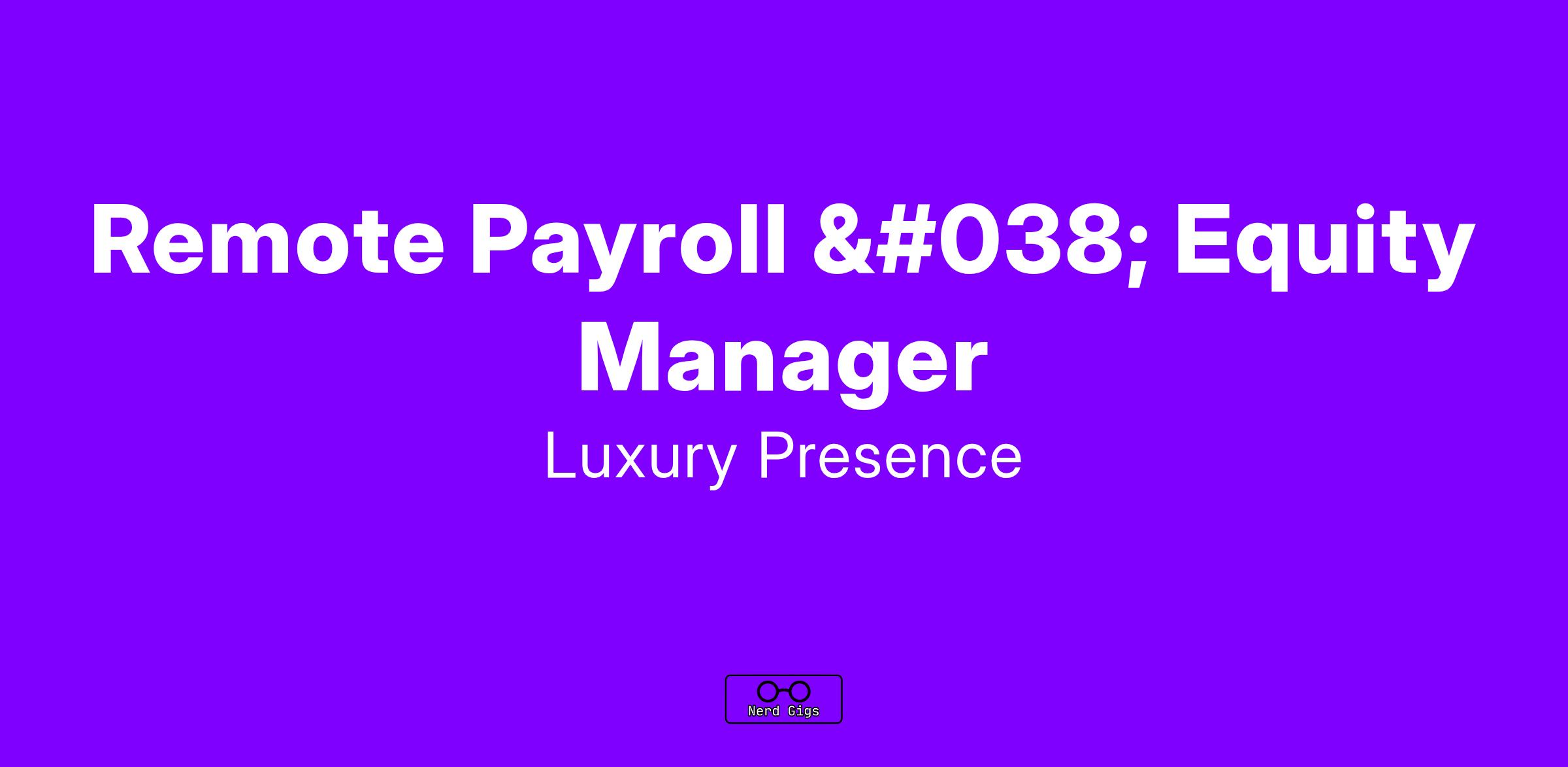 We are seeking a skilled and proactive Payroll and Equity Manager to own the payroll, bonuses, commissions, and equity processes at Luxury Presence. As the sole person dedicated to payroll and equity, this person will be integral in driving efficiency, accuracy, and compliance across all compensation processes. This role will report to the Controller and partner closely with HR, Finance, and Legal to ensure that all employees are paid accurately and on time, and that equity programs are managed effectively.