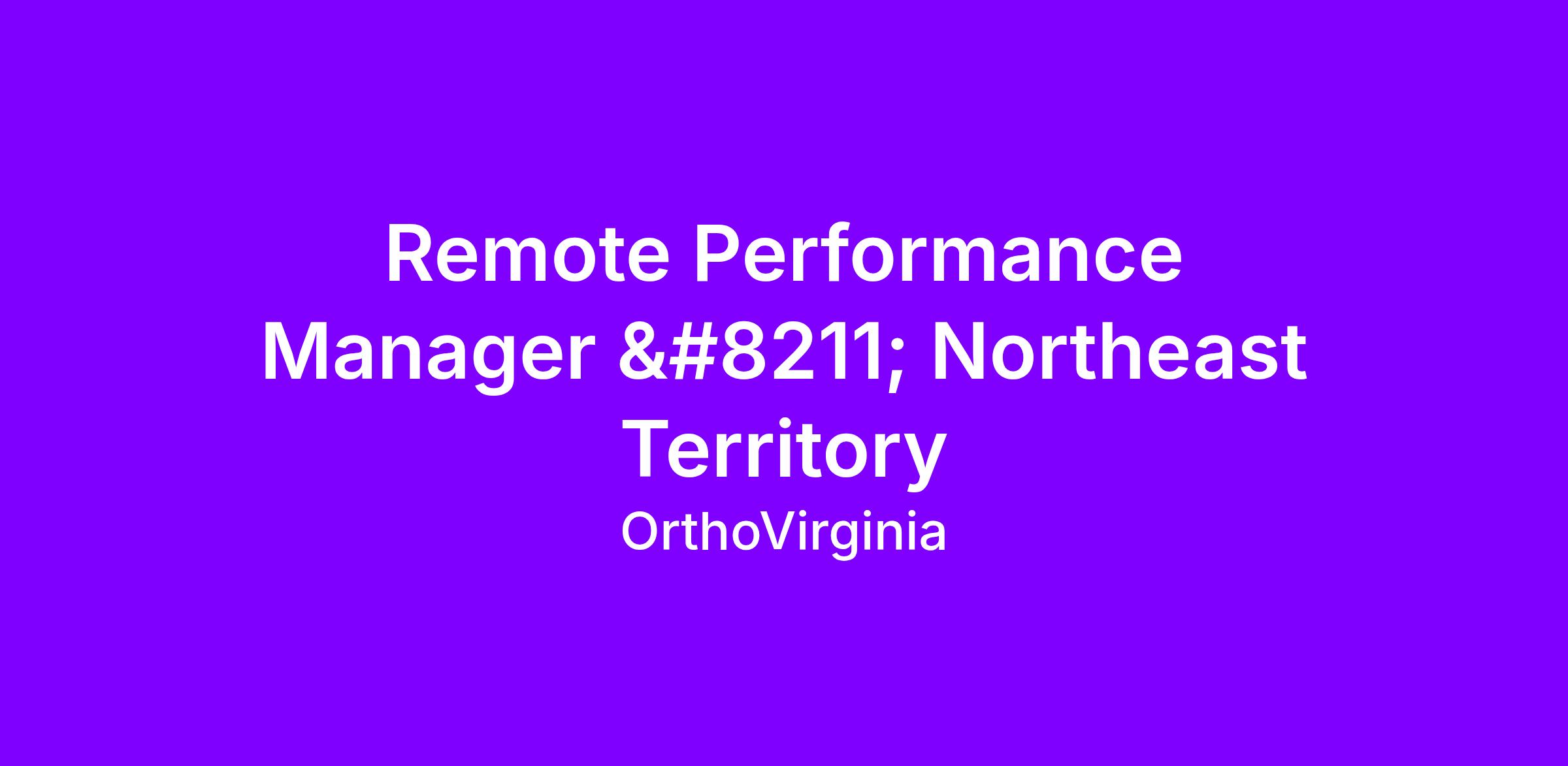 Remote Performance Manager – Northeast Territory
