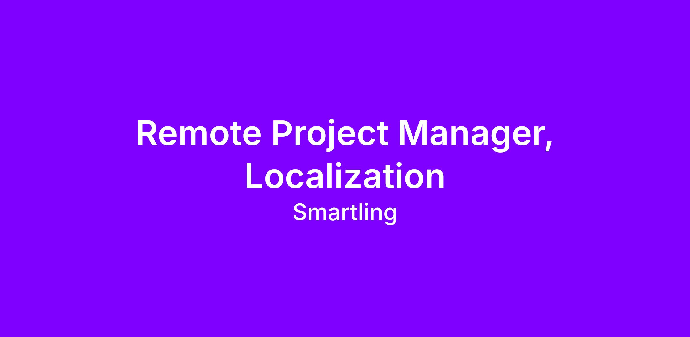 Smartling is seeking a Project Manager for a remote, work-from-home position based in Ireland. We are looking for a true go-getter to provide outstanding support to our Language Services customers. In return, we offer competitive compensation, exceptional benefits, a clear career path, and the unique opportunity to be a part of a high-growth company that is changing the world.