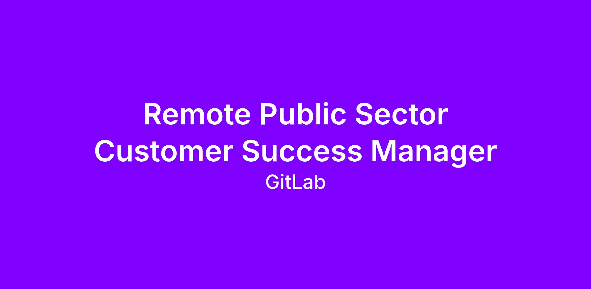 The Customer Success Manager role sits within our Public Sector Customer Success team, which partners with United States government and public sector organizations to help them realize ongoing value from the GitLab platform. We own the post-sales relationship, driving adoption, retention, and growth by aligning GitLab capabilities to each customer’s mission, enabling them on DevSecOps best practices, and coordinating cross-functionally with Sales, Support, Product Management, Engineering, and Professional Services. Our team members work in an all-remote, distributed environment and collaborate asynchronously across time zones, using GitLab’s tools and processes to stay aligned while we tackle opportunities such as expanding use cases, improving customer return on investment, and simplifying engagement with the broader GitLab ecosystem.