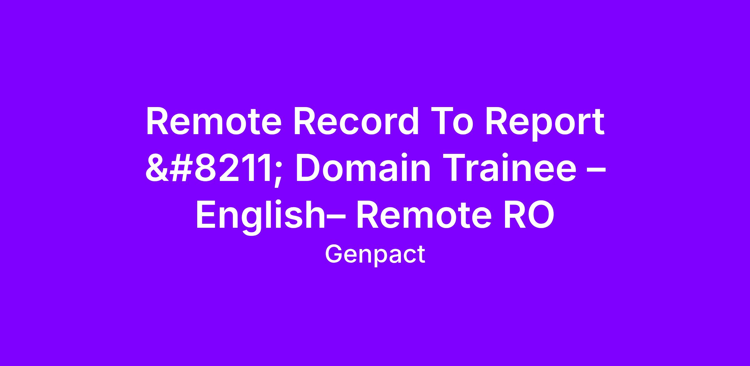 Inviting applications for the role of Record To Report – Domain Trainee – English– Remote RO