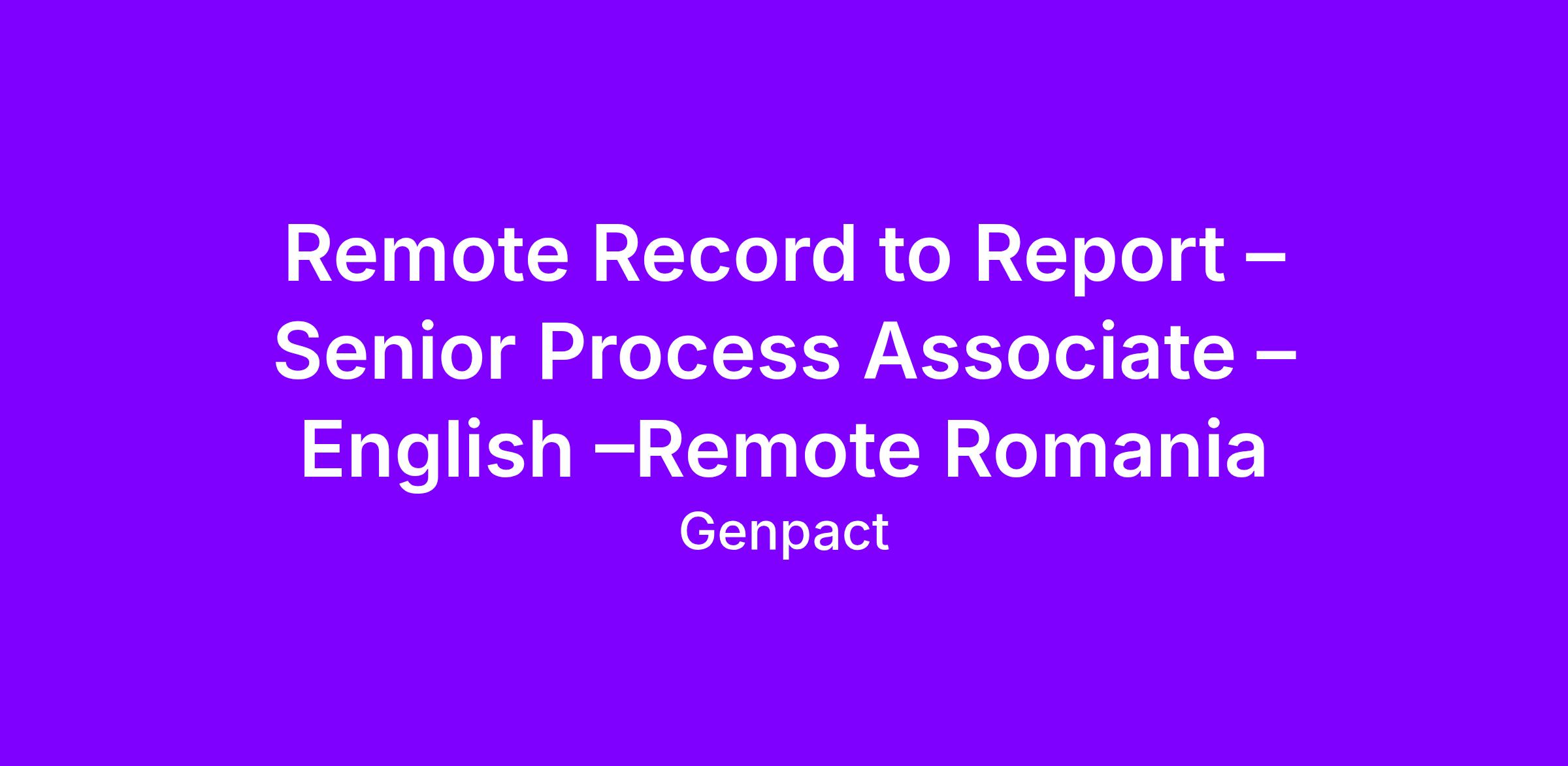 Inviting applications for the role of Record to Report – Senior Process Associate – English –Remote Romania