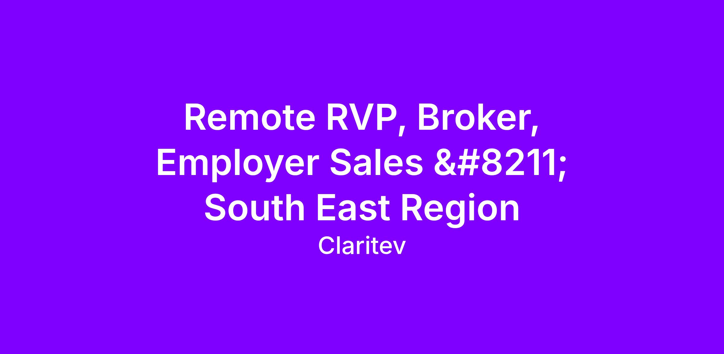 JOB SUMMARY: The Regional Vice President, Broker & Employer Sales is responsible for building, expanding, and strengthening strategic relationships across the health benefits ecosystem—including brokers and third‑party administrators (TPAs). This role drives net‑new business growth by developing market strategies, cultivating high‑value partnerships, and positioning the organization as a preferred solution within the regional marketplace. Role is remote, based in the United States. Travel is up to 75%. JOB ROLES AND RESPONSIBILITIES: 1. Establishes, develops and expands Broker and TPA relationships – South East region.