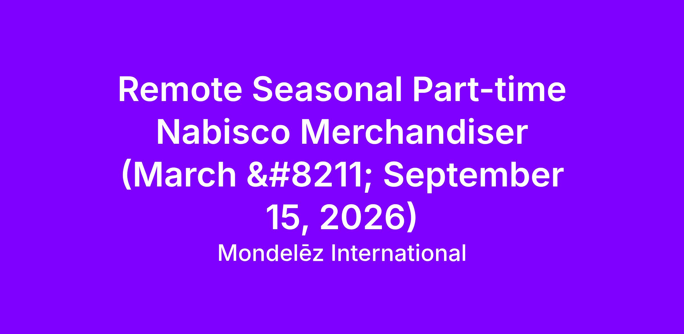 Seasonal Part-time Nabisco Merchandiser (March – September 15, 2026)
