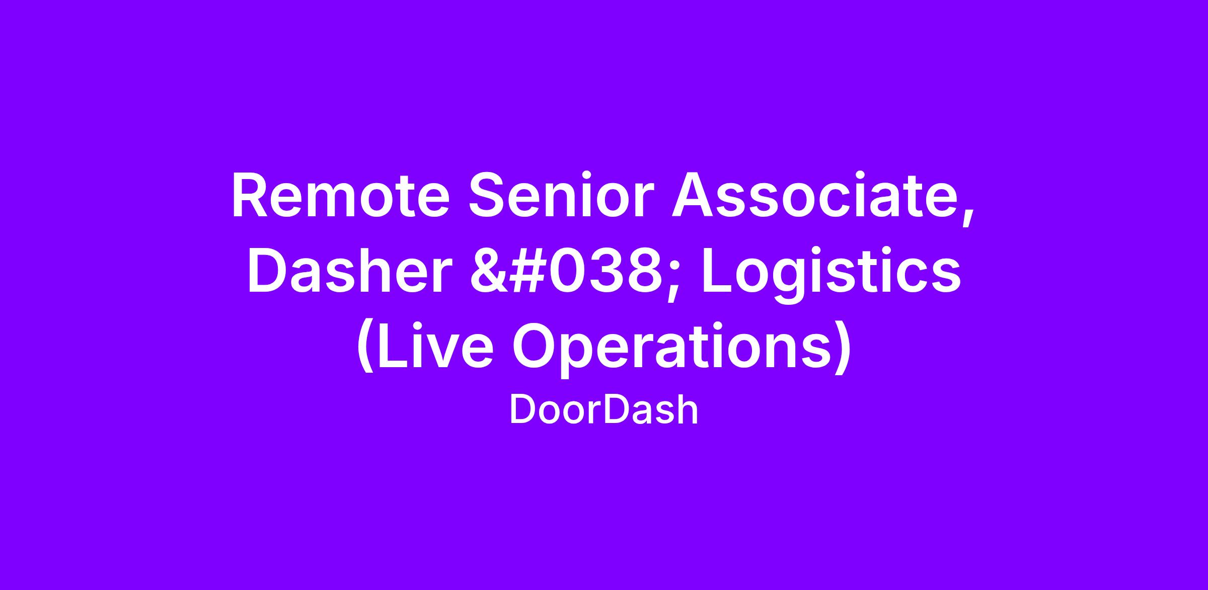 You will play an integral role in building our business strategy on our Live Operations team under the Dasher & Logistics Pillar . Your primary goal will focus on opportunities to improve delivery quality, operational excellence and optimize Dasher experience, during moderate and severe weather by getting into the weeds and really understanding what’s happening on the ground, developing and testing hypotheses, and scaling that impact through working with cross-functional teams such as Product, Engineering, and Analytics. You will report directly into a Manager or Senior Manager on the Dasher & Logistics team.