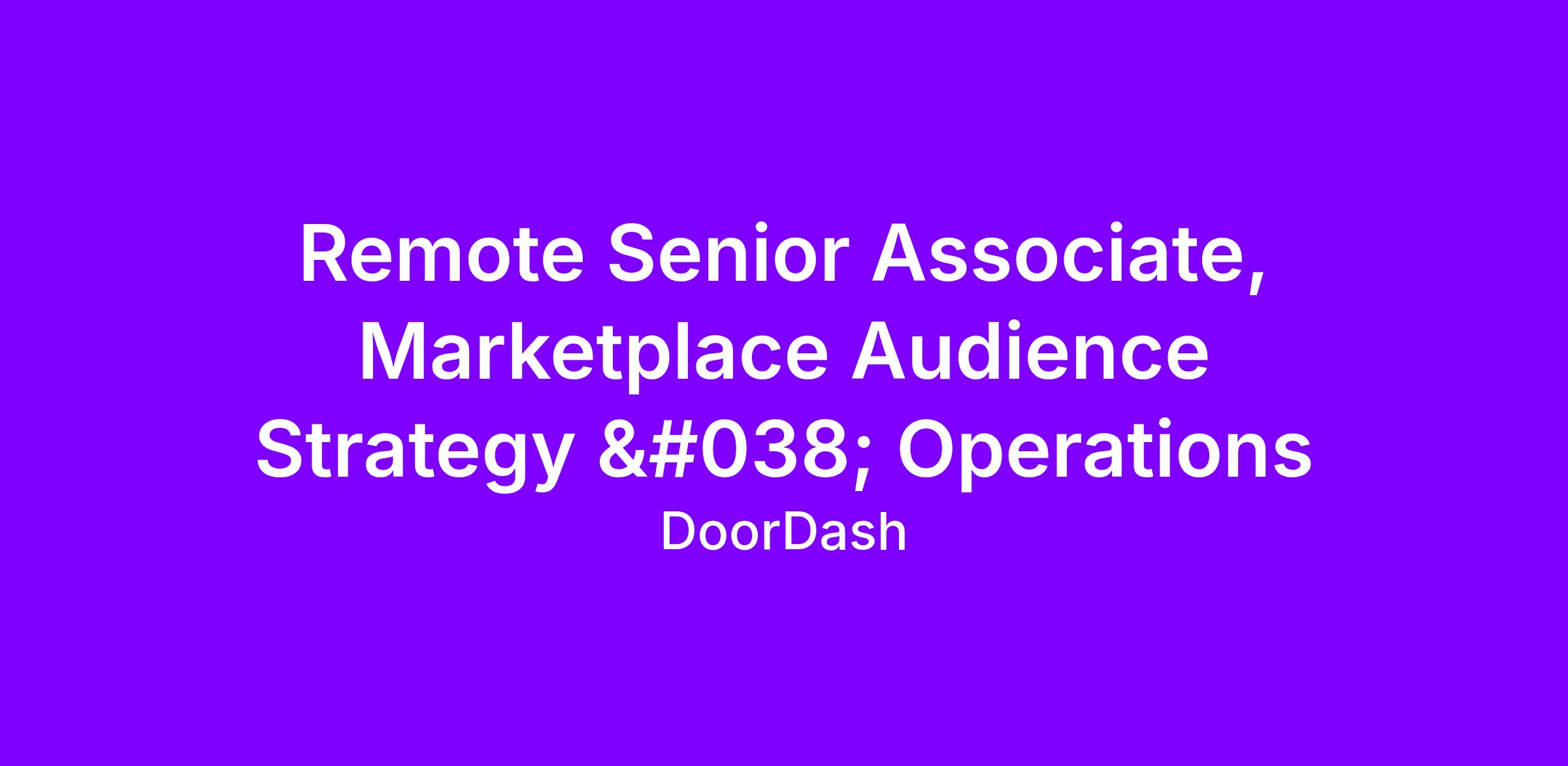 The Senior Associate, Marketplace Audience Strategy & Operations role is for truth seekers who enjoy getting scrappy while also examining data, creatively problem-solving on a daily basis, driving insights on business performance trends, using AI to drive efficiency, and working across a cross-functional organization to bring strategies to life. You will directly support new Audience penetration for DoorDash’s largest business unit.