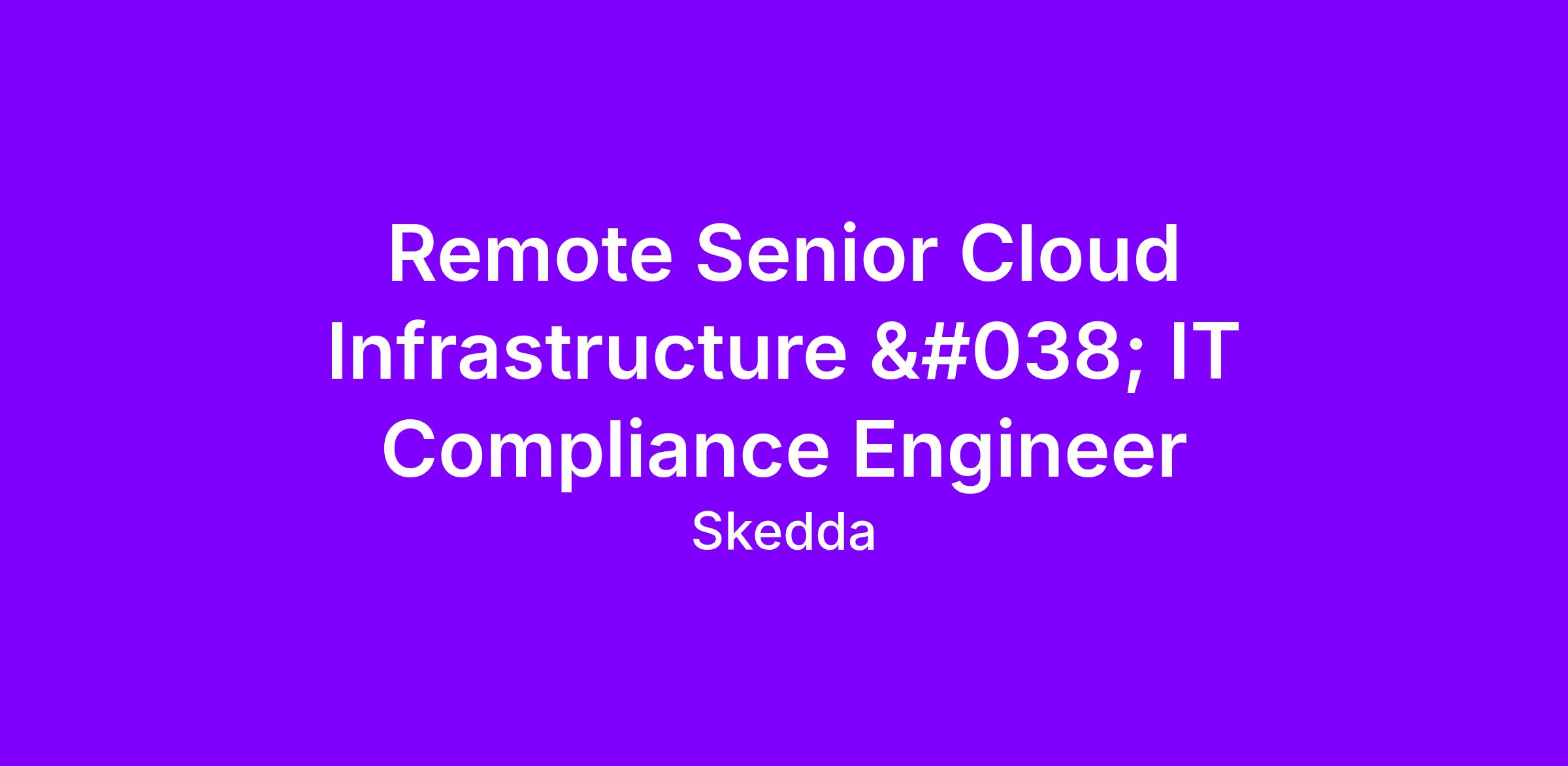 Senior Cloud Infrastructure & IT Compliance Engineer (Remote)