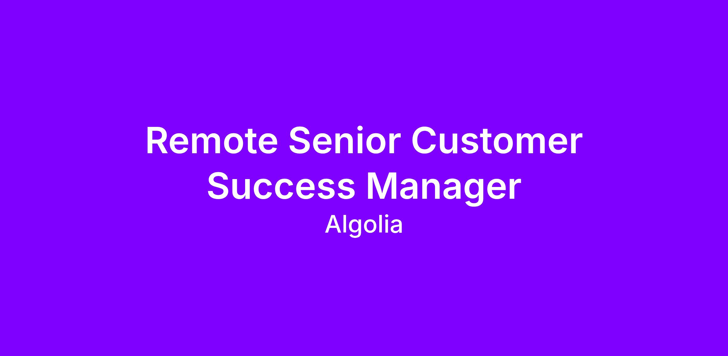 We are passionate about our customers so we’re looking for an all star Customer Success Manager who is ready to join our growing team. We need a dedicated advocate who possesses impeccable relationship management skills, can take the lead on solving issues, drive maximum value/ success to existing customers, inspire and sell the future of Algolia, encourage adoption and expansion, all while building delightful and long-lasting relationships. You will work closely with our Account Executives and Solutions Architects to ensure customers achieve their business objectives, advise them on best practices and act as the voice of the customers internally.