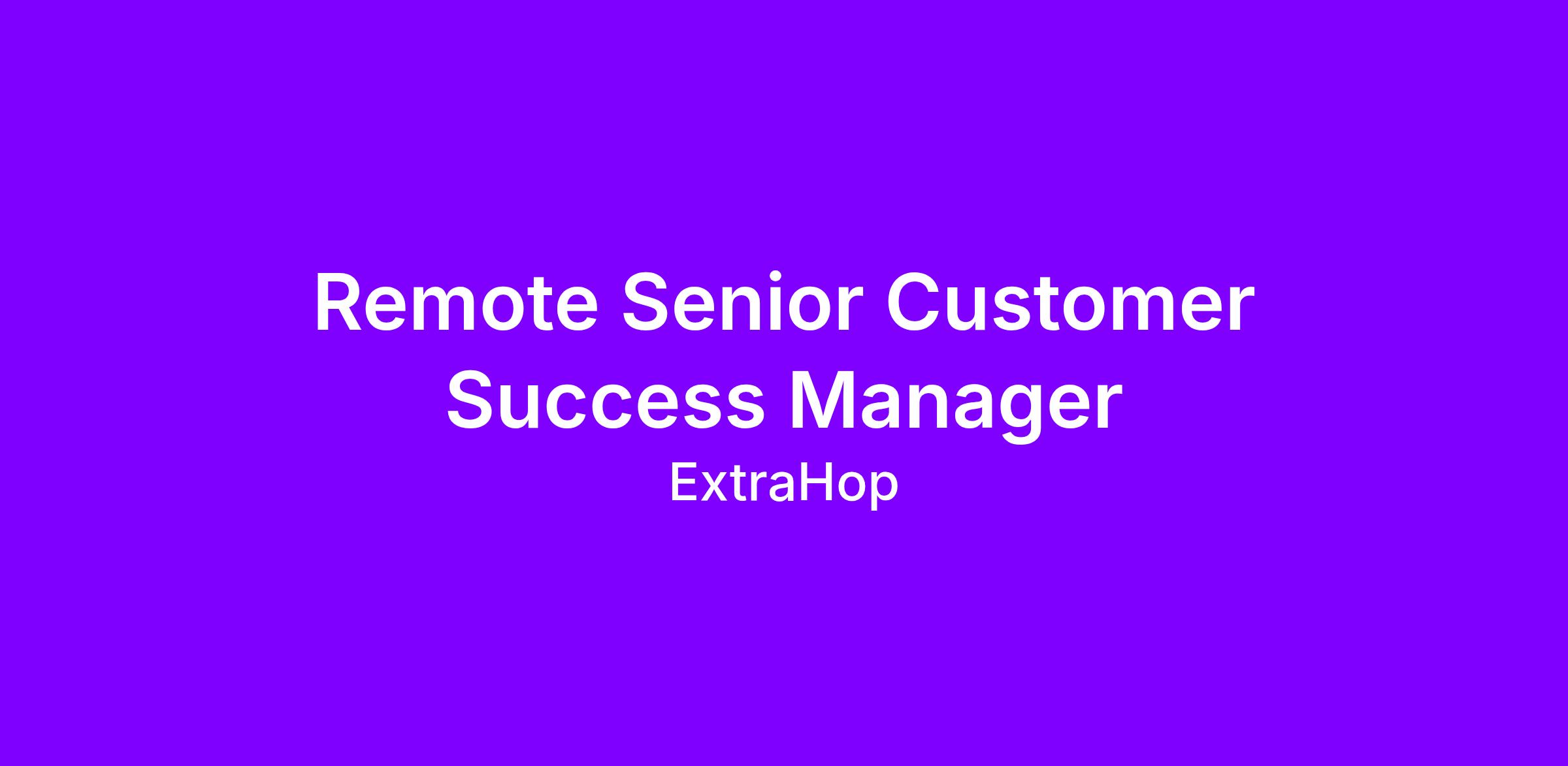 Do you want to work with a platform and technology where you can help customers solve critical business problems? Do you enjoy and excel at building lasting customer relationships? As a member of our Customer Success team, you’ll have the opportunity to unleash your expertise to wow customers and make a difference in an exciting, growing company. At ExtraHop, we provide solutions for mission-critical business and technology problems across a vast array of industries and technologies. With us, you’ll deliver solutions that customers previously thought infeasible or impossible to solve. Join us and you’ll find we have a supportive home team, great customers, and a product that customers love.