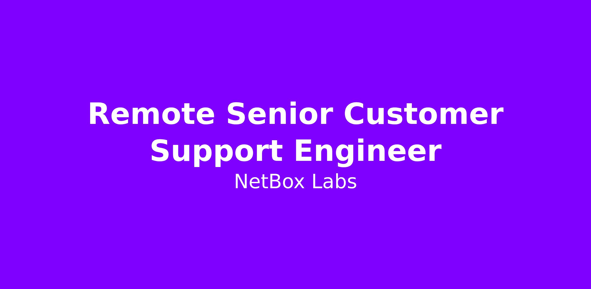 As a Senior Customer Support Engineer (CSE) at NetBox Labs, you are the technical partner your customers rely on. You immerse yourself in their world, learn how they run their networks, and help them get real value from NetBox and our broader product suite. When something breaks, you own it. When customers are planning something complex, you are in the room. When they are not sure what is possible, you show them.